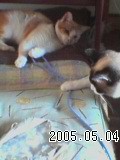 写真は部屋に入ってから紐で遊ぶ弦ちゃんです。