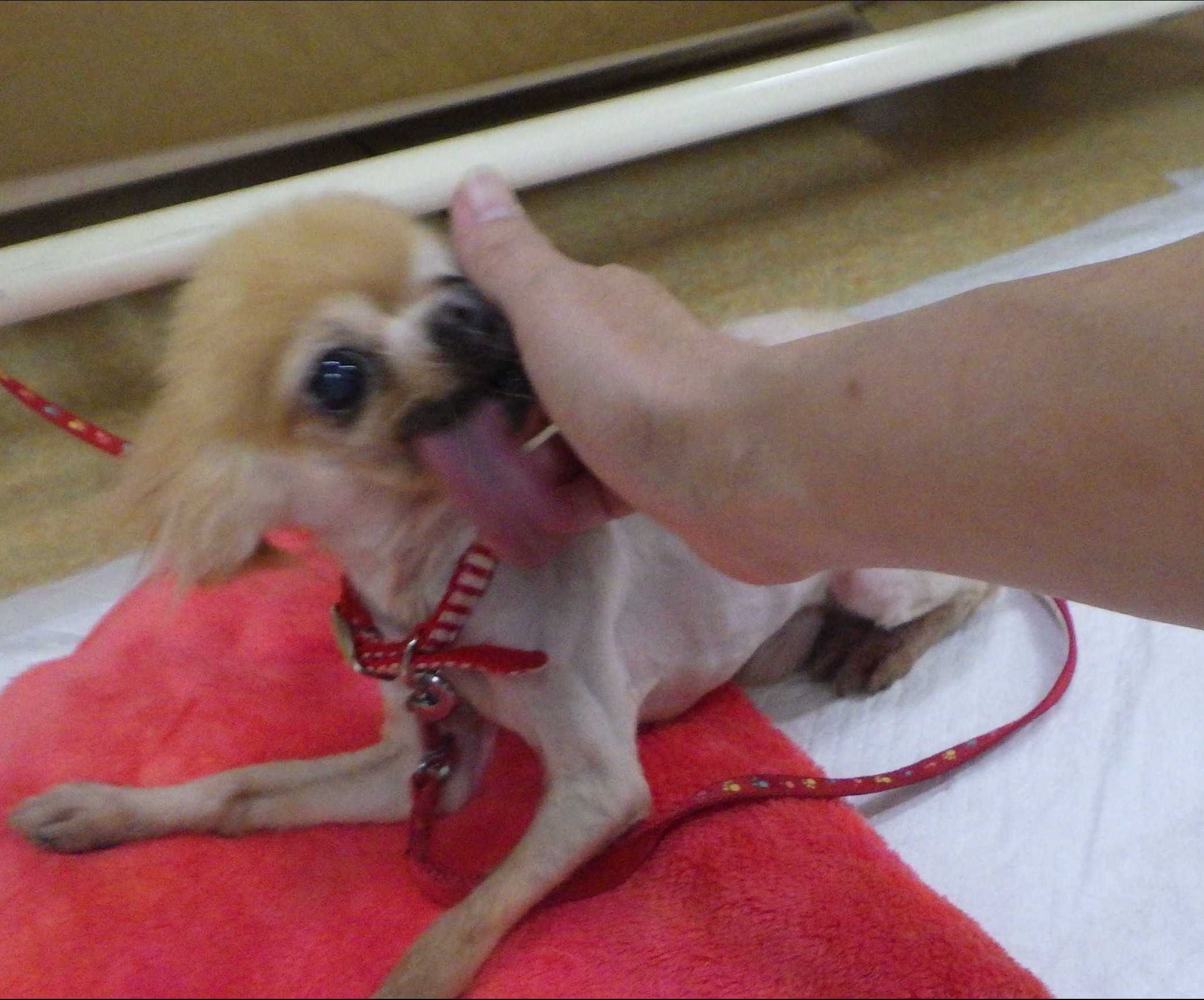 舌がびろ~んと出っぱなしのお年寄りのおじいちゃん犬です。