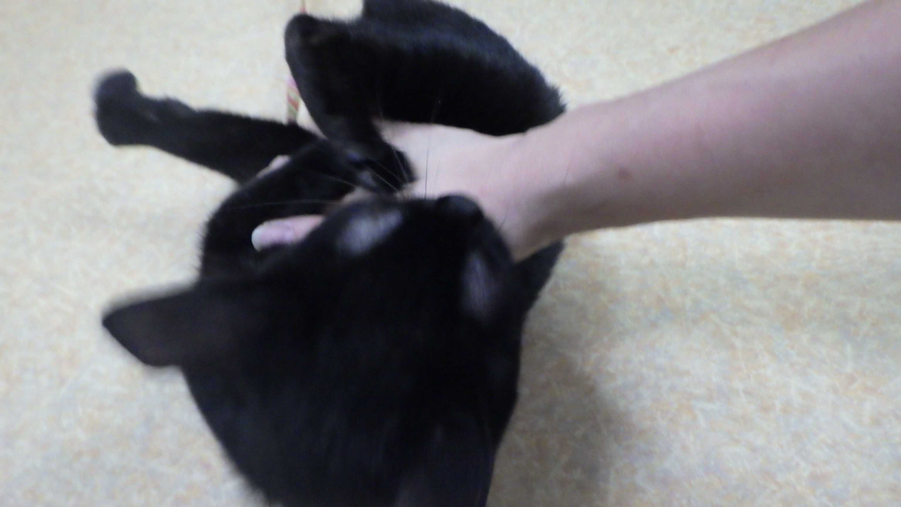 背後から黒猫のうっちゃんが はがいじめのタックルをしかけてきました。