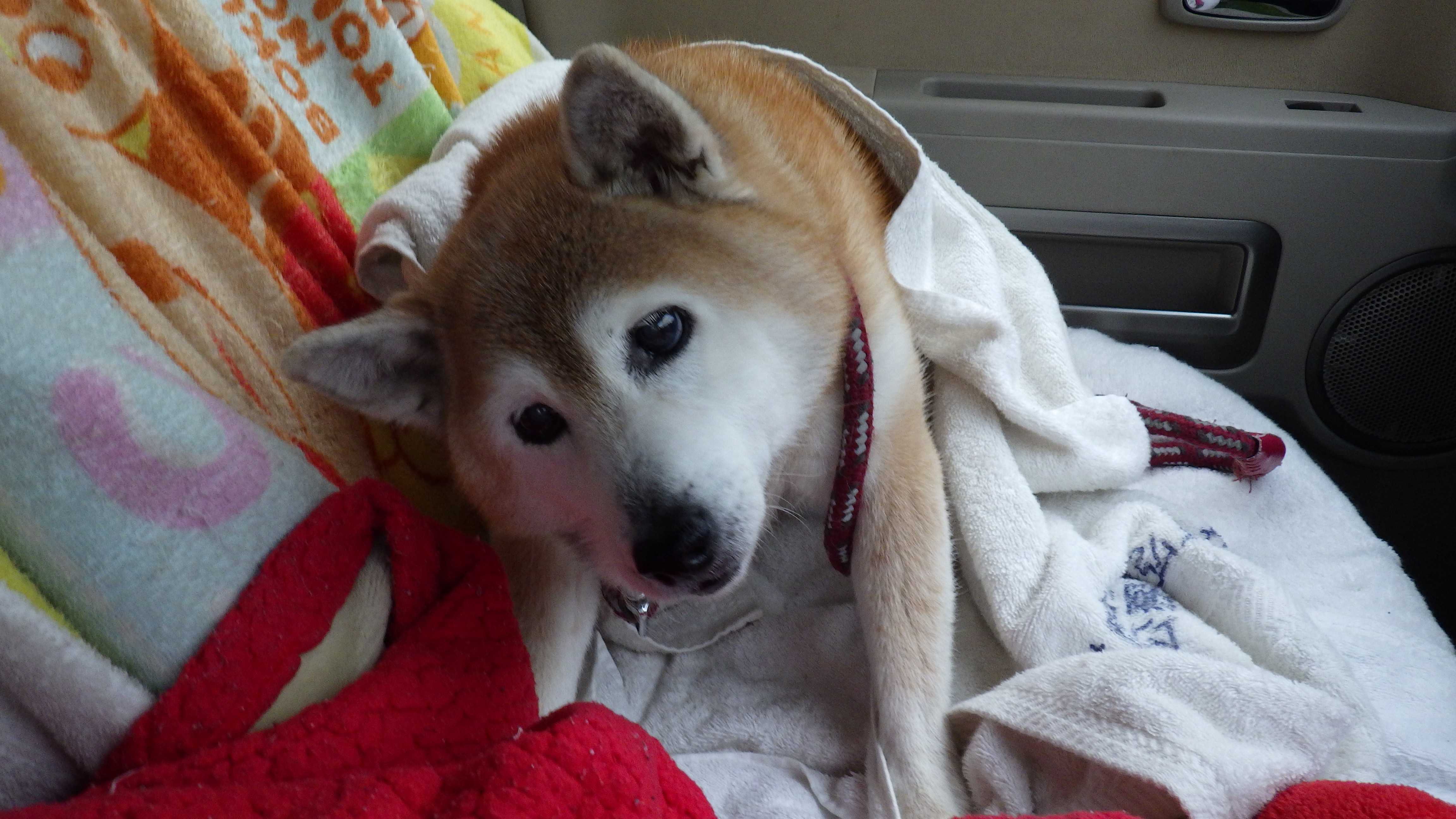 そのままワンコをタオルでそっと包んで車の助手席に乗せ、