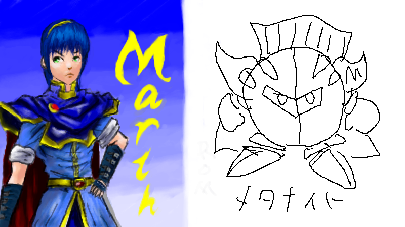 宿題やらなくてはいけないけどまぁ明日もあるから【死亡フラグ暇じゃないのにさも暇をもてあましているかのように描いたなっちゃんとこの絵チャで1人で描いていたよ。マルスとメタナイトマルスが不機嫌そうなのは仕様ってことでwwストライクウィッチーズ面白いよー