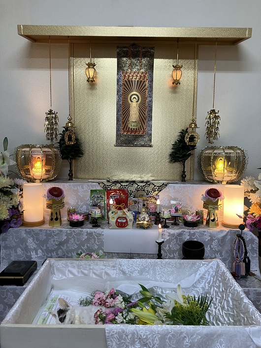 にーちゃんとのお別れが無事に終わりました。今回も丁寧な心のこもった対応をしてくださったスタッフさんに感謝します。おかえり、にーちゃんにーちゃんへお花をたくさん頂戴しました。温かいお気遣いに感謝します。また、メッセージを下さった方々にも感謝致します。べ~も見に来た。と思いきや、お供えのフードを食べていました今日から我が家にはべ~ちゃんと外猫のまーたの2匹となりました。これからも細々とではありますが動物達のために出来ることをしていきたいと思います。
