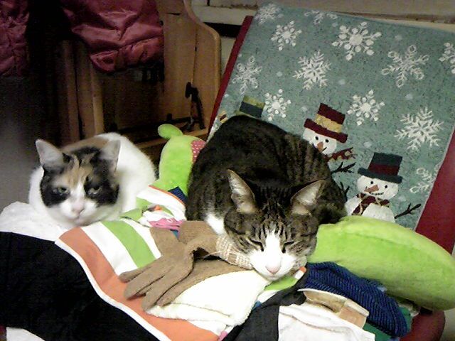 ミントと一緒に洗濯物の上でまったり大笑い