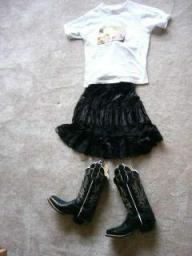 ウエスタンブーツの新しい黒の方でやってみたかったコーディネート。フェミニン×ハードの黒バージョン。スカートはベルベットとレースが段になっているもの。私は背が低いのでブーツが隠れちゃいそう・・・と思っていたけど、裏地が短めに取ってあって、幅のあるレースの層のおかげで透け感ができていいバランスに。このスカートはあの白コットンよりは高いよ~!!2000円!!(爆!!)お買いもの上手?冬に一時帰国していたときに買ったもの。日中暑いぐらいだったからTシャツ。ラファエロの可愛い天使のちびT。たしか4年前にローマに行ったときに買った、子供サイズのお土産Tシャツ。5ユーロぐらいだった。まだしつこく着てる。このコーディネートもみんなに色々ほめられた。素敵ですとー。ファッショナブルですとー。フフフ・・・うれしいぜ。ブーツ単品も相変わらず大人気でブックストアのトレッドヘア兄ちゃん(もちろん知らない人)にまで「・・・・そのブーツ、いいな!!」と言われたよ。あげないよー、私のだもーん。しかし、案外本物のウエスタンブーツを履いている人はいないんだなー。アメリカ人でも。ファッション誌を見ると、モデルさんとか女優さんとかは履いてるんだけど。なぜ?はまりすぎるから?謎。