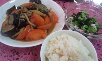 あれからフラフープ回して14時からランチ作り。買ってきた茄子とトマトを使って、味噌炒めを作りました。茄子一本、トマト一個、豚肉、しめじを味噌、醤油、みりんで味付け。トマトと味噌が意外と合う。調味料などはすべて目分量です。あとはさっき作った酢の物、そして発芽玄米50パーセントのご飯。久々にまともにご飯作ったような気がする。おいしかったよ!でも味噌炒め多かったーorz完璧に食べ過ぎた!おなか空いてたとはいえこれの三分の二くらいの量でよかったな。準夜いっぱい動いて消費しなければ。罪悪感ないって言ったらうそになるけど、前よりは全然大丈夫になった。ちゃんと食べて痩せれるようになりたい。体ぽっかぽかや!もうちょっとしたら仕事。病棟落ち着いてますように!