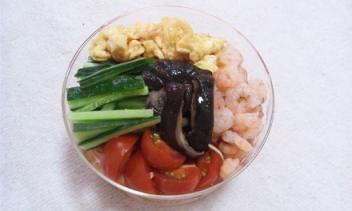 ↑料理名と☆を入れるとレシピブログっぽくなったwちょっと前に彼氏が仕事先でなぜか素麺大量にもらってきて、いくら大家族の彼氏んちでも消費しきれないらしく、私も先日数束分けてもらった。今日はその素麺を使って夕飯作り!冷やし中華風に仕上げたよ。具材はきゅうり(刻んだだけ)、ミニトマト(半分に切っただけ)、エビ(茹でただけ)、卵(だしを入れて焼いただけ)、しいたけ(昨日の晩砂糖と醤油とみりんで煮ておいた)。具だくさん!!しかもあんまり何も考えずぼんぼん乗っけたから素麺隠れた 笑ちなみにめんつゆはトマト味のつゆ。スーパーに売ってたので一番安かったやつ。wよく考えたら素麺食べるの数年ぶり。小学校の時は夏休みの昼ごはんって言ったら素麺やったなぁ。。毎年お中元で大量に送られてきてたからね。毎日食べさせられて飽きてたのは飽きてたけど、お母さんが作る麺つゆがむっちゃおいしかったんよな。前に作り方聞いたら「全部目分量やから教えられない」って言われた。病院に持ってく途中つゆが漏れなければいいんやけども。。今は冷蔵庫で冷やし中!!彼氏にも画像送ったよーしかし、もっと上手に盛り付けられるようになりたいな。勉強せねばー
