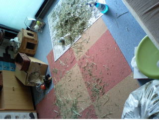 トイレは毎日ですが、ウサギのケージは週一の掃除。この間、鼻炎のwatawataは寝室に避難するほどのワラまみれ状態。部屋はワラの屑と香りに包まれています。このワラの洗礼を一度でも受ければ、もうハイジのワラ布団にも素敵なフランス映画に出てくる馬屋での情事にも憧れを抱かなくなります。ふっ・・・
