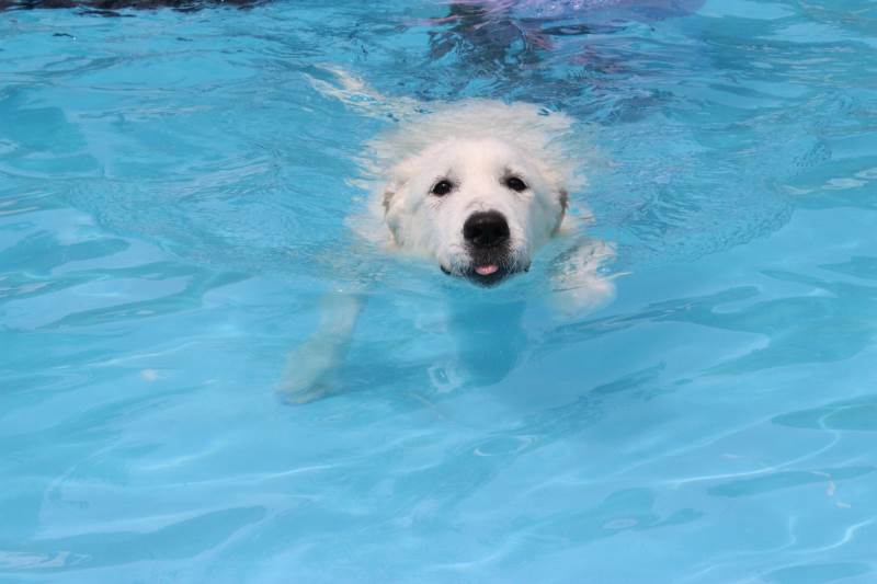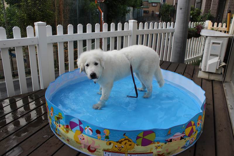 犬専用のプールに行ってきました。はじめは足をつける程度で水際でちゃぽちゃぽしていました。水に入るのが怖いのか自らは入りませんでした。抱きかかえ深い所へ連れていくと、暴れるでもなくきれいに犬かきしていました。尻尾をつかんでいるとずっと泳いでいますが、水の中が好きというわけでもなさそうです。今日はとても暑い日ではなかったせいかもしれません。