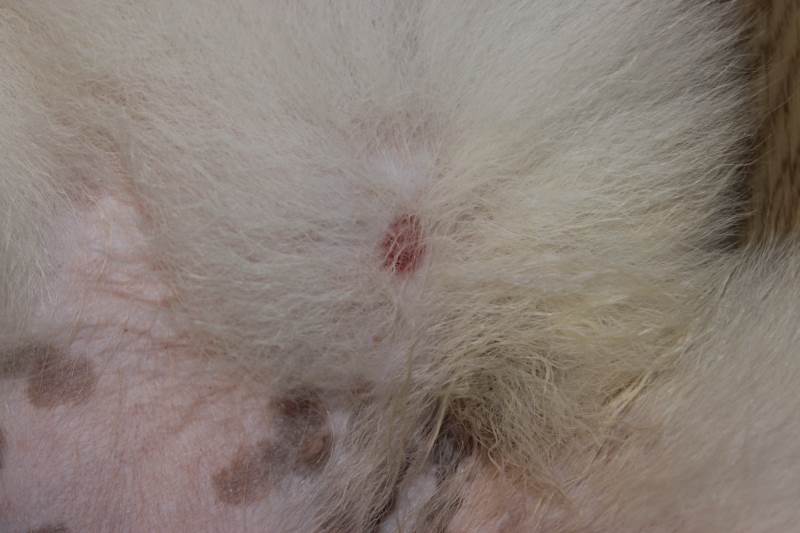 ブラッシングしていると、おなかに血豆のようなものが。マダニです。とうとう刺されてしまいました。刺された部分をかゆがってもいなかったので、湿疹も食べ物のアレルギーだと思ていましたがどうもマダニのせいのようです。7~8mmぐらいにパンパンに膨れ上がり、刺されたところも10mmぐらい赤くなっていました。救急病院に連絡したところ、緊急手術があり対応できないとのことでインターネットで調べたら酢で取れると書いていたのでその通りやると取れました。しかしながら、違う救急病院に連絡したところ、たまたま取れることもあるが顎が残ってしまうことがあるので病院で取ってもらうのが正しいとのことでした。薬を飲んでいた場合、時間が経つと薬が効き自然に取れるとのことでした。薬は飲んでいましたが実際見てみると焦ってしまいました。写真を撮ってみました。ダニの顎はついているようなので、たぶん大丈夫だと思いますが救急病院に行ってきました。もしかしたら、顎が残っているかもしれないので明日以降経過観察が必要とのことでした。前にも書きましたが、皆さんも気を付けてください。