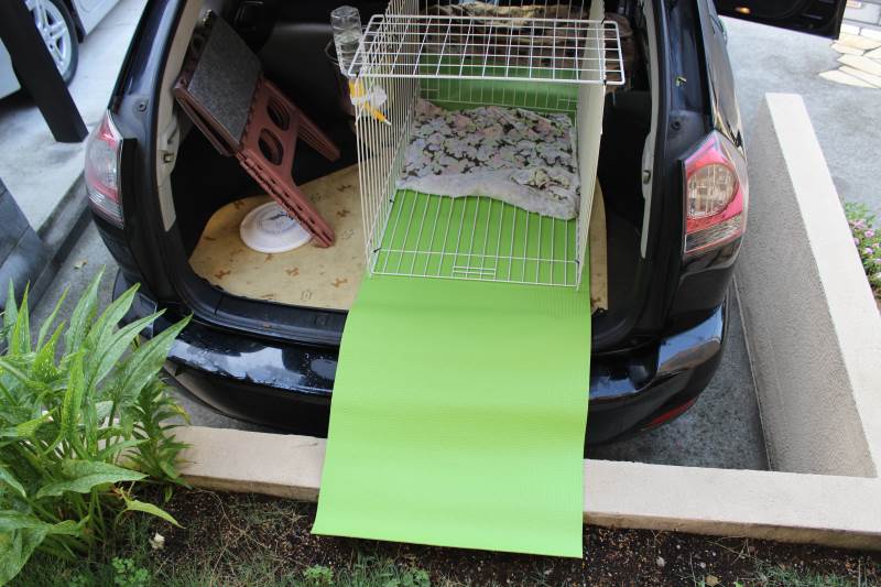 今まで、後部座席を片方倒し自由にいさせましたが、安全性を考えケージを設置しました。ケージと言っても自分で組み立てたものです。バリケンも考えましたが、ぶらんはまだまだ成長時期なので選択しませんでした。今日の、試運転で強度が弱かったので、弱い部分の補強が必要かも。犬友の助言で車に乗せるのにヨガマットが良いと聞きました。そういえば、Wii Fitと同時に買った、使っていないヨガマットがあることを思い出しました。使う日がやってくるとは...