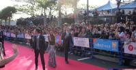 「沖縄国際映画祭 レッドカーペット<その1>」の続きです♪日記カテゴリーの、「沖縄国際映画祭」に順番にUP中。画像が多くて、登録枚数制限に引っかかってUPし切れず<その2>のUPが、今日になっちゃったわ。~~~~~~~~~~~~~~~~~~~~~~~~~~~~~~~~~~~レッドカーペットの途中のアナウンスで会場全体が、悲鳴と間違うような歓声混じりに物凄くどよめいたのがこの人の登場だった・・・。安室奈美恵さんが、サプライズゲストとして突如、レッドカーペットに登場!真ん中にいるのが安室さんね。話には聞いてたけど、本当~に顔が小さくて、オーラが凄い!会場にいた女子中高生達なんて、半狂乱みたいな声上げてるしやっぱりこの人は、沖縄でも内地でも「別格の人」なんだなぁ。安室さんが登場することは、完全にサプライズだったようでレッドカーペットを歩く芸人さん達や俳優・女優さん達ですら、何も知らなかった様子。完全にシークレット&サプライズゲストだったみたい。日頃、芸能人と仕事をしている芸能人の人達までがアナウンスが流れた途端、「ウソぉ!?」、「お~!マジで!?」なんてレッドカーペット上で振り返ったりして騒いでたよ^^; 左は、釈由美子さん。右は、吹石一恵さん。お2人とも、メッチャキレイでした。大きく写った画像が載せられないのが残念。 左は、鈴木杏樹さん。右は、はんにゃの川島さん。 私が18~9くらいの頃かな・・・杏樹さんが出てるバラエティ番組(「OH!エルくらぶ」だっけか)を毎週見てたけどその当時と、大して変わってない気がする当時も、英語もペラペラで笑顔が素敵で、本当にキレイな女性だなぁと思いながら見てたけどよく考えたら、あれからもう20年近く経ってるのか orz20年近く経ってるのに、あの美しさって羨ましい・・・。はんにゃの川島さんですが必死に手を伸ばして、握手して頂きました唯一、握手して下さった吉本の芸人さんです。この画像は、握手して頂いたすぐその直後に慌てて撮ったもの。伝説の子供番組、ピン○ンパンによく似てる、ピラメキたいそうの衣装だね。その他、谷村美月さんと、琉球ゴールデンキングスの外国人選手の方とも握手したよ。 左は、しずる村上さんと、再び鈴木杏樹さん、それにキム兄こと木村祐一さん。真っ赤なジャケットが目立ってたな、キム兄。改めて見ると、私のヤロー友達にソックリだ。売れっ子のしずる村上さんは、やっぱり女の子からの歓声が多かったね。右は、観客の頭が邪魔しちゃってるけど、陣内智則さん。まぁ・・・お約束というか観客のお兄ちゃんとかから、フザけて「紀香~!」とか呼ばれてたなw品川庄司の庄司さんが登場すると、「ミキティ~!!」とヤジられるのと同じか。 左は、スーツ姿の男性陣の後ろに、マシ・オカさん。HEROESの「ヤッター!」でお馴染みの、アメリカの日本人俳優さんですな。レッドカーペット以外では、彼の姿は全然見なかったけど。場所を移動して、右は、握手攻めにされていた哀川翔さん。レッドカーペット左右両岸からの握手攻めで、なかなか進めて無かったよ^^; 左は、次長課長の河本さん。彼もサービス精神旺盛で、色紙とペンを出されたら受け取ってサインしたり1度歩き終わったレッドカーペットに再び戻り沖縄のローカルタレントの、津波信一さんと肩組んだりしながら2回目のレッドカーペットを歩いてたな。河本さんは、元々が沖縄大好き芸人さんだから、交流があるんでせう。個人的には、タンメンが見たかったぜ全力タンメン!歌が上手い芸人さんだから、イベントでの歌うまライブでは目立ってたよ。右は、ココリコ田中さん。田中さんも哀川翔さん同様、握手攻めで大変そうだったな。 左右合わせて、矢島美容室(タカさん、ノリさん、DJ OZMAさん)ね。やっぱり目立ってたわ、この扮装だしね。タカさんは、やっぱり豪快な感じでノリがメチャクチャ良かった。・・・レッドカーペットはこんな感じかなぁ本当は、もっといっぱい画像は撮ったんだけどSDカードとデジカメの相性が絶不調に悪くて、認識されなかったエラー画像も多く大好きなブラマヨや、ケンコバ、ナベアツ、岡村さん、板尾さんなどなど1枚残らずボツになっちゃった画像が多くてね・・・撮れた画像よりも、エラーになっちゃった画像のほうが多かったもん。載せた分についてももっと、ちゃんとハッキリ写ってる画像を載せたかったのはヤマヤマだけど正面向いてる写真はなるべく避け、顔が大きく写ってる方の画像もかなり縮小させて頂きました。次の沖縄国際映画祭日記はレッドカーペットの続きで行われた開会式の様子の予定( ̄▽ ̄)ノシ沖縄国際映画祭のテーマソング。沖縄テイストと関西テイストがマッチした、優しくていい曲♪映画祭開催中、この曲を何度耳にしたか分からんわぁ( ̄▽ ̄*)