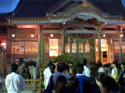 さて、前の日記からの続き大祓式の次に行うのは、茅輪神事です。境内の前に設置された茅をたくさん束ねて作った、大きな茅の輪を8の字にくぐります。参列者全員がくぐるから、割と時間掛かるんだけどね。で、ちょうどこれは順番待ちの光景。1人ずつくぐると時間が掛かるから、3方向から並ぶ列から順番に10数人を一組で括り「では次は、こちらの列の方どうぞ」みたいな感じに案内されてくぐる。ちょうど、私のすぐ前で区切られ私は、茅輪を次の一番前の列でくぐることに。人が絶え間なく動いてるのと、外が暗くなって光が少ないもんで画像がブレてキレイに撮れない状況的にも、フラッシュをたくのはマズそうだし。くぐり方ですが・・・茅輪の前に2列で並び、正面から輪をくぐって左側に回り、元の茅輪の正面に戻る。そして今度は、また正面から輪をくぐって、今度は右側に回り、また茅輪の正面に戻る。これで、茅輪を8の字でくぐったよね♪次は、また正面から茅輪をくぐって、そのまま境内の階段を上って左折し本殿の裏手にある、天然鍾乳洞の洞窟くぐりへ。この洞窟くぐりは、まさに、この普天満宮だけのものだろうね見る価値はかなりアリ!です。本殿の裏手に回る途中で参加者が事前に、名前と生年月日を書き込んで納めた紙の人形(ひとがた)を神主さんが、1枚ずつ火にくべてお焚き上げしてる様子を横目に、洞窟くぐりへ。洞窟の入口は、ガラスケースの中に展示品とかが並んでたりしてプチ博物館の様相みたいなんだけど、その短いスペースを抜けると・・・おお~!ホントに、こんな天然鍾乳洞が現れるから凄い!ここ、ニュースを毎日揺るがしている最中の、あの普天間基地のすぐそばよ?^^;普天間に、こんな天然鍾乳洞があるとは!(普天満宮にはよく来るから洞窟は知ってたけど、実は入るのは初だった)多分、ここがご本尊だと思ふ。参列者がどんどんやって来て、皆この前でジッと手を合わせ無病息災なり、お願いなりをしてました^^勿論私も、あれやこれやでは無いけど、じっくり時間を掛けて、手を合わせて参拝。こういうとこって、撮影NGだろうなと思ったら、周りの人達もみんな撮影してたし洞窟内にいる神主さん?宮司さん?も、特に何も仰らないんで私も撮影洞窟の内部は、そりゃ~見事な鍾乳洞でたくさんのロウソクの明かりに照らされて、こんな感じだったりこんな感じだったり。例えば、「おきなわワールド」の、玉泉洞のミニバージョンってとこかなwこんな、海兵隊基地と住宅街の中にあるとは思えない、立派な天然鍾乳洞だったよ♪・・・貧乏性な私は、せっかくこんな機会なんだしと帰り掛けてから、またさっきの本尊の前に戻ってもう1回、じっくりと手を合わせて参拝してから洞窟を出ました^^;洞窟を出て上がったところで、神社の氏子さん達かな?が参列者全員に、ペットボトルのお茶orレモンティーを配ってた。そっか。飲み物付きか^^;で、ここからまだ続きがあって・・・洞窟から出た後、ジュース飲んで一服してから、また境内前に戻ると参列者全員が茅輪をくぐり終わった後で、大きな茅輪が解体され始めてたんで他の皆さん達と同じように、茅輪の茅を数本頂いて来ました~。(一家族で3本?みたいなことを言ってた気が)その頂いた茅を、教えて頂いた通りに結び家族の集まるリビングや、台所等に下げると良いんだそうな。一家どころか、お1人様で参列したのに、7~8本の茅を渡されてしまった。それを一纏めに結び、食うも寝るも遊ぶもここしかない自室に下げてますこんな感じで、大祓式→茅輪神事→洞窟くぐりと進んだ、夏越の大祓レポはおしまい。参加の初穂料は1人千円だし(家族一組だと3千円)、来年もまた来ようっと。ちなみに、の普天間宮の洞窟ですが入りたい場合は、普天満宮の社務所の方にその旨を伝えると洞窟の入口まで案内してくれるので、誰でも入ることが出来ます。ゴッパチ(国道58号)の伊佐交差点にも『普天満宮洞穴』(標識では、「洞窟」とは書かれてない)の案内標識が出てるから観光の1つにもオススメです沖縄に来て、旅の安全祈願にもイイかもね。確か・・・年始などの繁忙期は、洞窟には入れなかったはず。それ以外の時期ならば、朝~夕方まで入場OKだったかと。(行かれる際には、事前の問い合わせをしたほうが確実でせう)