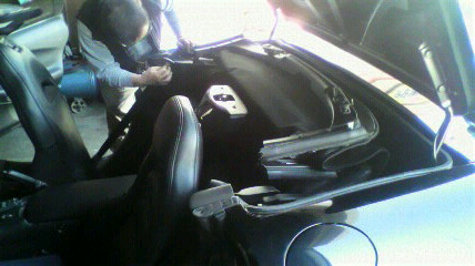 C5コルベットの場合、トップ(幌)を車体から外さないと、幌交換出来ないから、トップ部分を取り外して幌を交換した後、車体に組付していきます。