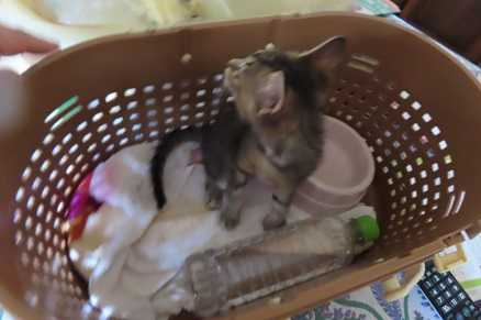 今日も朝からギラギラ今日6時から市クリーン作戦我地域は公園の雑草除去と掃除、娘が出てくれて感謝です「何箇所も蚊に刺されてよー」と帰ってきましたチビ猫ちゃんわが家に来て、昨日で10日経ちましたウンチ出ないと心配してました。2度少し出ただけ・・数日前から猫砂用意してました・・がっ、赤ちゃん猫砂食べようとするのよ・・昨日、試しに砂トイレに放り込んだのよ・・両方出ました「わあ~~天才猫だー」娘が騒いでます生まれて一ヶ月でトイレ覚えるとは・・(=^・^=)自らトイレに行くようになりましたまだ、ミルクだけなのでトイレ回数多いようです体重は1.5倍増、360gに大きくなったのわかりますよ最初よちよち歩きだったのが・・走り回っていますまずはトイレ覚えたので、安心リビングだけ放し飼いです甘え上手かも・・今日離乳食はじめました喜んで食べます娘、猫ちゃんにこんな事言ってます「チビちゃん、お前あと二十年車買えるくらいかかるんだよ・・猫の仕事しておくれよ・・」だとよ・・夕方水かけへあれーー何処まで高くなるのか・奥の黄色百合2メートル以上も伸びたよ アルストロメリア、水不足咲き具合が悪いよ・・明日も辛い天気のようです