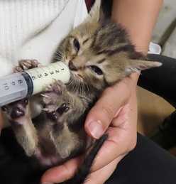 今日も朝からギラギラリビングの一間半の大きな出窓東側なもので・・朝から太陽光ガンガンです・・😞チビ猫ちゃん、4時間ごとのミルクタイム私深夜担当。娘早寝なもので早朝4時担当に決めました本当は逆がいいのだけど・・なので、早起き出来ないわたしですわが家に来て4日目ですミルクはぐびぐび勢い良く飲んでいます体重一日10gづつ増えてます・がっ心配事が・・おしっこはするが・・うんちまだ一度もしてないお尻あたり刺激してるようですがね・・娘に「ペット病院に行こう・・」と言ったらこれはこれで天命だから・・・なんて言ってますちっこ過ぎて心配ですプリン猫は私にベッタリよこのくそ暑いのに・・いつも膝に乗ってきます赤ちゃん猫とおばあちゃん猫(20歳)と人間と暑い夏元気に過ごさなけばね・・