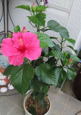 今日も暑かったエアコン頼りよ朝水掛けして・・庭遊び中止東側は一間半の出窓なのよ・・朝日が昇ると太陽光ガンガンなのよ・・掃除機掛けも大汗です・・午後肥料買いにホームセンターに出かけました化成肥料も高くなったね・・5㎏袋買うか・・10㎏入り割安ね・・これから玉葱など植えるし・・お花達にも使えるし春にも使うからと・・10㎏化成肥料買ってきました見つけちゃった、可愛らしい色 、450円安ピンク ハイビカス高さ60㎝位蕾沢山あるよもう・・室内冬越し鉢増やさないと思ってたのに・・連れてきました帰り道きれいな夕陽、久々に見たよ・・明日は午後雨予報午前は庭遊び出来るかな~~
