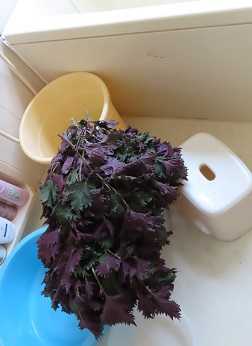 挨拶は「今日も暑いね・・」で始まる今日です午前はリハビリデイ、ガンガンエアコン稼働で快適でしたでも運動すると大汗でした。若いスタッフさん、ウケ狙い?うちわ両手で仰いでくれました、(笑ちゃいました)「あっという間の午前中、今日も楽しかったね暑さに気を付けてね・・・またね・・」と仲間たちとの会話でした先日友達から「梅欲しい?」と☎「欲しい・・24個しか採れなかったよ」3㎏位頂きました焼酎35度で洗い、10%の塩で漬けておきましたいい感じに水あがりました前に1㎏買ったのと、我が家の大粒24個も合わせて漬けてあったのです昨日、庭畑の赤シソ収穫日差し強くて・・外で洗うのは無理(いつも外で洗ってます)風呂場があるではないか大きめ漬物樽を持ち込んで・・ざぶざぶ水はね気にする事なく洗えました次は・・陰干し2時間位干して葉切り落として・・少量の焼酎振りかけて・・しっかりと揉まないと赤色でないので・・塩揉み。。。揉んで・揉んで・揉みました塩漬した梅と塩揉みシソ交互にして・・こんなんになりました全部入りきりませんませんでした。シソ多かったかも・・土用まで漬けて・・土用干ししよう・・減塩なのでカビでなければいいがね・・以前主人と子供達の弁当 ある時は、毎年7・8キログラム作ったものでしたチビ猫ちゃん日記自分て毛繕い?するようになりました。成長早いよ・・