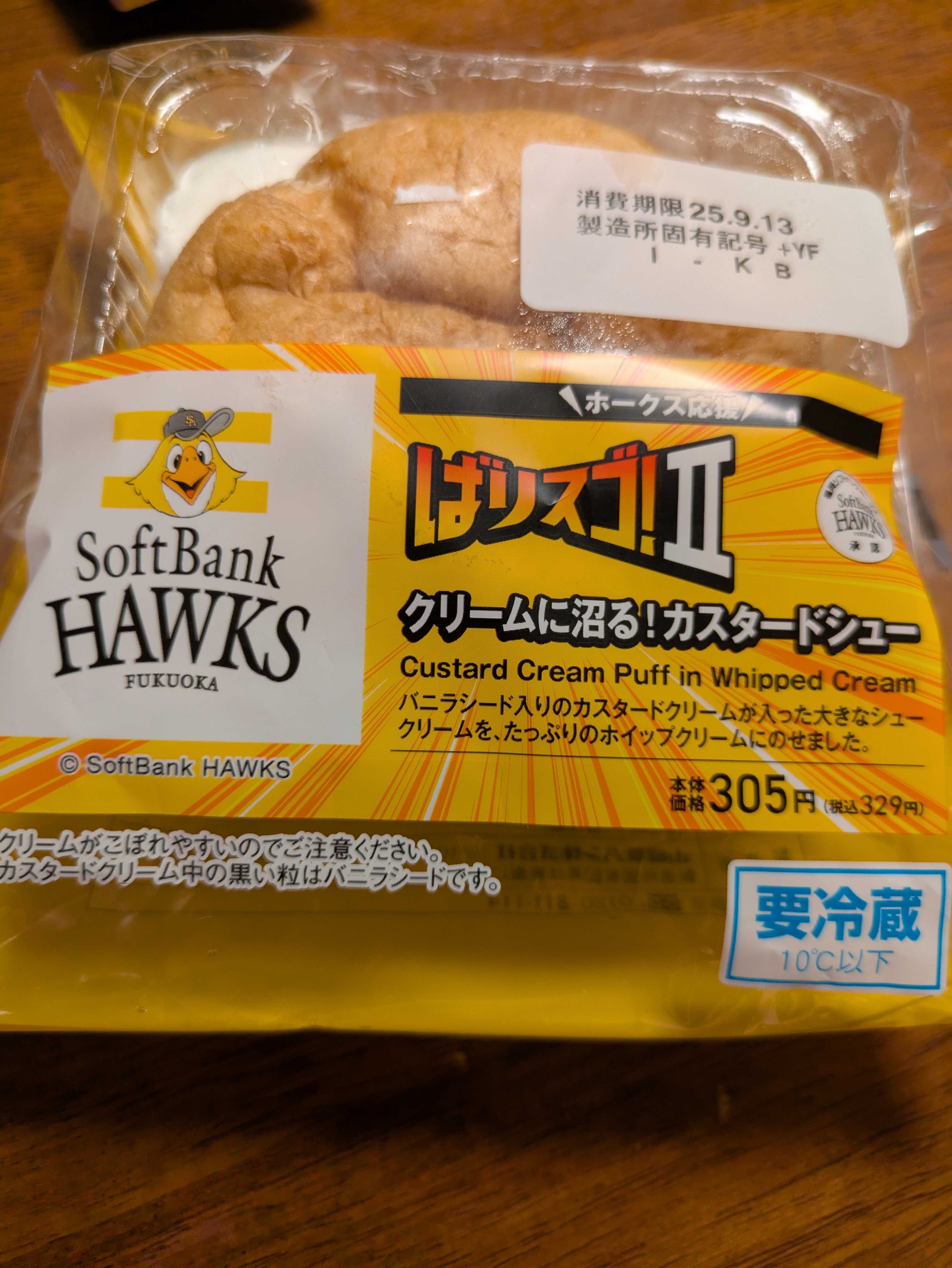 マジックナンバー点滅してるし、ホークスは優勝がよく似合う。ホークス感謝祭みたいな企画が飛び出した。シーズン中ではあるけれども、応援する人を応援するみたいな。2000年以来「福岡ソフトバンクホークス」のオフィシャルスポンサーであるローソンは、例年福岡ソフトバンクホークスを盛り上げる商品を発売しています。今年3月には博多弁の「ばりスゴ!」をコンセプトにしたコラボ企画「ばりスゴ!」を実施し、今回その第二弾として「ばりスゴ!Ⅱ」と銘打ち、ボリューム感があり食べごたえのある商品を発売いたします。発売する商品は、「ばりスゴ!ホームラン勝つプレート」(税込697円)、「ばりスゴ!広島風お好み焼」(税込599円)、「ばりスゴ!ごぼう天うどん」(税込599円)、「ばりスゴ!ダブル勝つサンド」(税込397円)、「ばりスゴ!まるごとたまごおにぎり」(税込297円)、「ばりスゴ!ロングソーセージパン」(税込235円)、「ばりスゴ!クリームに沼る!カスタードシュー」(税込329円)の7品です。「シュークリーム」を食べた。大きくて、とても一人では食べられないと思った。二人でシェアするのにちょうどいい大きさ。今年は日本一になってくだせえ。その勢いを「ホークス感謝祭」で表現してくだせえ。「ばりスゴ!」って叫ばせてくだせえ。 ホークス グッズ 近藤健介 今宮健太 中村晃 牧原大成 柳田悠岐 三森大貴 東浜巨 武田翔太 甲斐拓也 甲斐野央 和田毅 周東佑京 栗原陵矢 高橋礼 石川柊太 森唯斗 板東湧梧 上林誠知 選手スマホケース手帳型 全機種対応 テレQ ホークス グッズ マッカノーズ スマホケース iPhone17 iPhone 16e pixel9a aquos sense9 arrows We2 galaxy a25 デザイン 福岡ソフトバンクホークス softbank スマホカバー 携帯ケース ベルトなし 手帳 ケース カバースマホケース手帳型 全機種対応 テレQ ホークス グッズ マッカノーズ スマホケース iPhone17 iPhone 16e pixel9a aquos sense9 arrows We2 galaxy a25 デザイン 福岡ソフトバンクホークス softbank スマホカバー 携帯ケース ベルトなし 手帳 ケース カバー価格:3,280円(税込、送料無料) (2025/9/14時点)楽天で購入保冷ポーチ付き福岡ソフトバンクホークス ゴルフ ミニ トートバッグ 2024年モデル 保冷ポーチ付き ブラック×イエロー sbbb-4419福岡ソフトバンクホークス ゴルフ ミニ トートバッグ 2024年モデル 保冷ポーチ付き ブラック×イエロー sbbb-4419価格:4,180円(税込、送料別) (2025/9/14時点)楽天で購入ソフトバンクファン必見!福岡ソフトバンクホークス マーカー付キャップ ジュニア 子供用 帽子 SoftBank HAWKS SBPC-5554 日本正規品 あす楽 あすつく福岡ソフトバンクホークス マーカー付キャップ ジュニア 子供用 帽子 SoftBank HAWKS SBPC-5554 日本正規品 あす楽 あすつく価格:1,874円(税込、送料別) (2025/9/14時点)楽天で購入 【正規販売店】【2枚以上で送料無料】福岡ソフトバンクホークス コラボ 限定 夏マスク クールマスク 洗って繰り返し使える夏用のマスク 暑さ対策グッズ 冷却グッズホークスコラボマスク 福岡ソフトバンクホークス Softbank コラボ 限定 クールマスク 日本製 洗える 接触冷感 涼しい 夏マスク 調整 繰り返し使える 洗える 冷感 大人用マスク 子供用マスク Sサイズ Mサイズ Lサイズ UVカット ひんやり冷感 白 ホワイト プロ野球 パリーグホークスコラボマスク 福岡ソフトバンクホークス Softbank コラボ 限定 クールマスク 日本製 洗える 接触冷感 涼しい 夏マスク 調整 繰り返し使える 洗える 冷感 大人用マスク 子供用マスク Sサイズ Mサイズ Lサイズ UVカット ひんやり冷感 白 ホワイト プロ野球 パリーグ価格:1,000円(税込、送料無料) (2025/9/14時点)楽天で購入「いいね」ボタン「コレ!」登録。宜しくおねがいっ!!