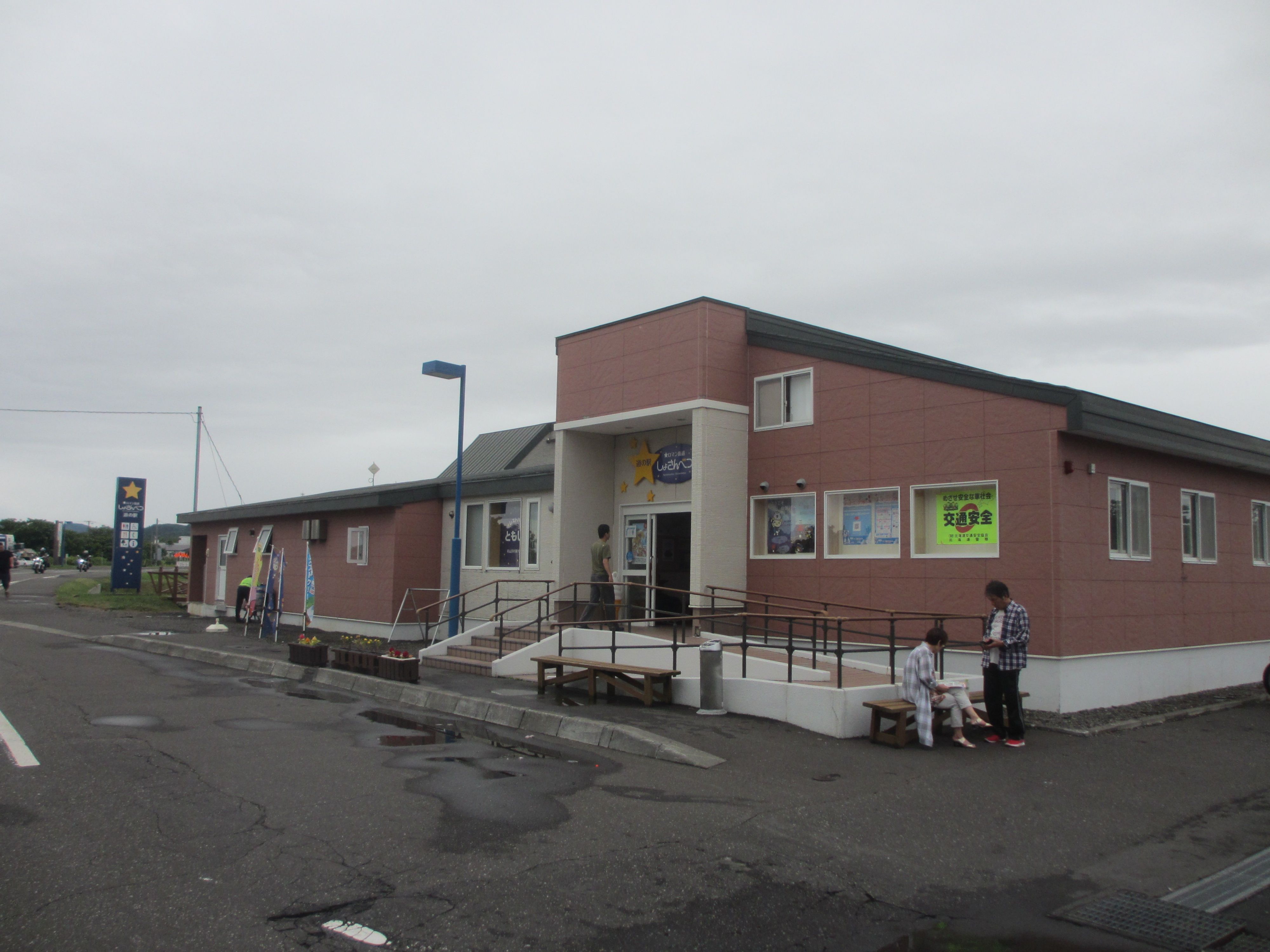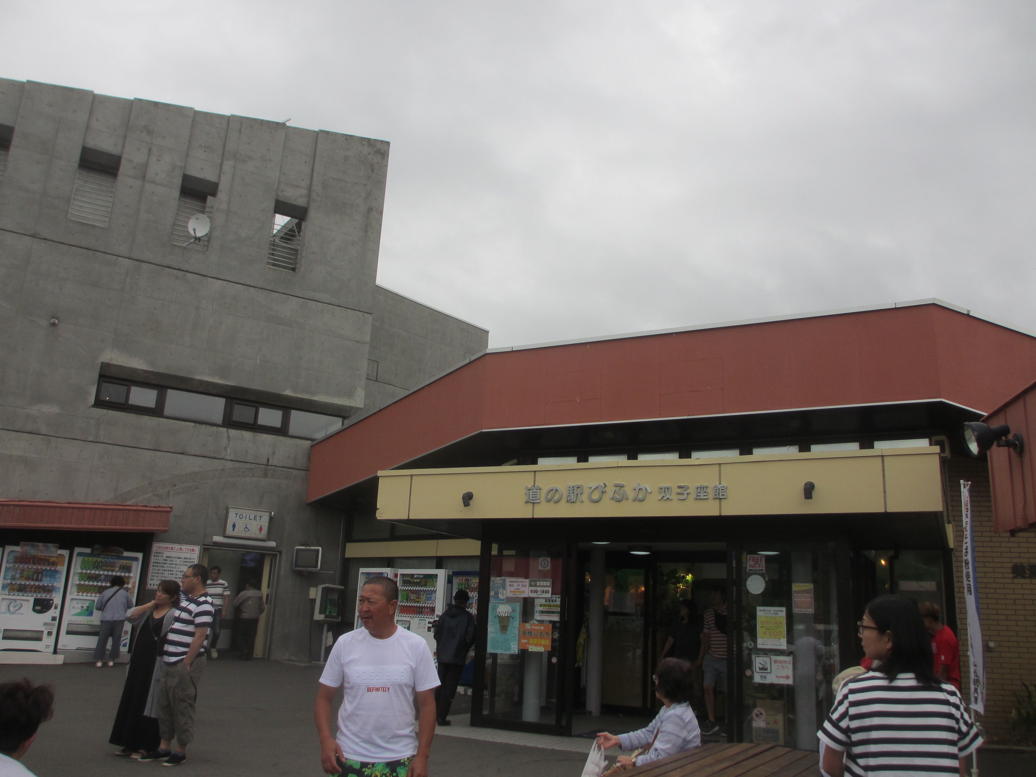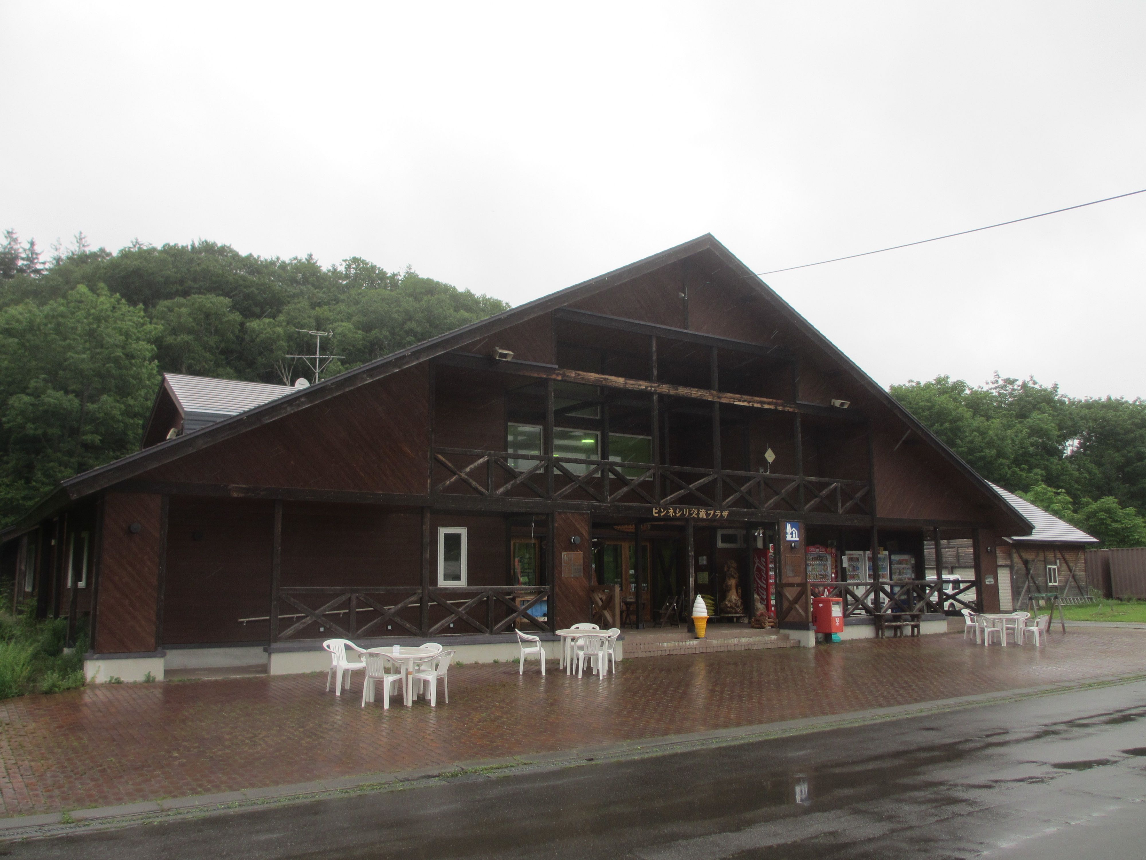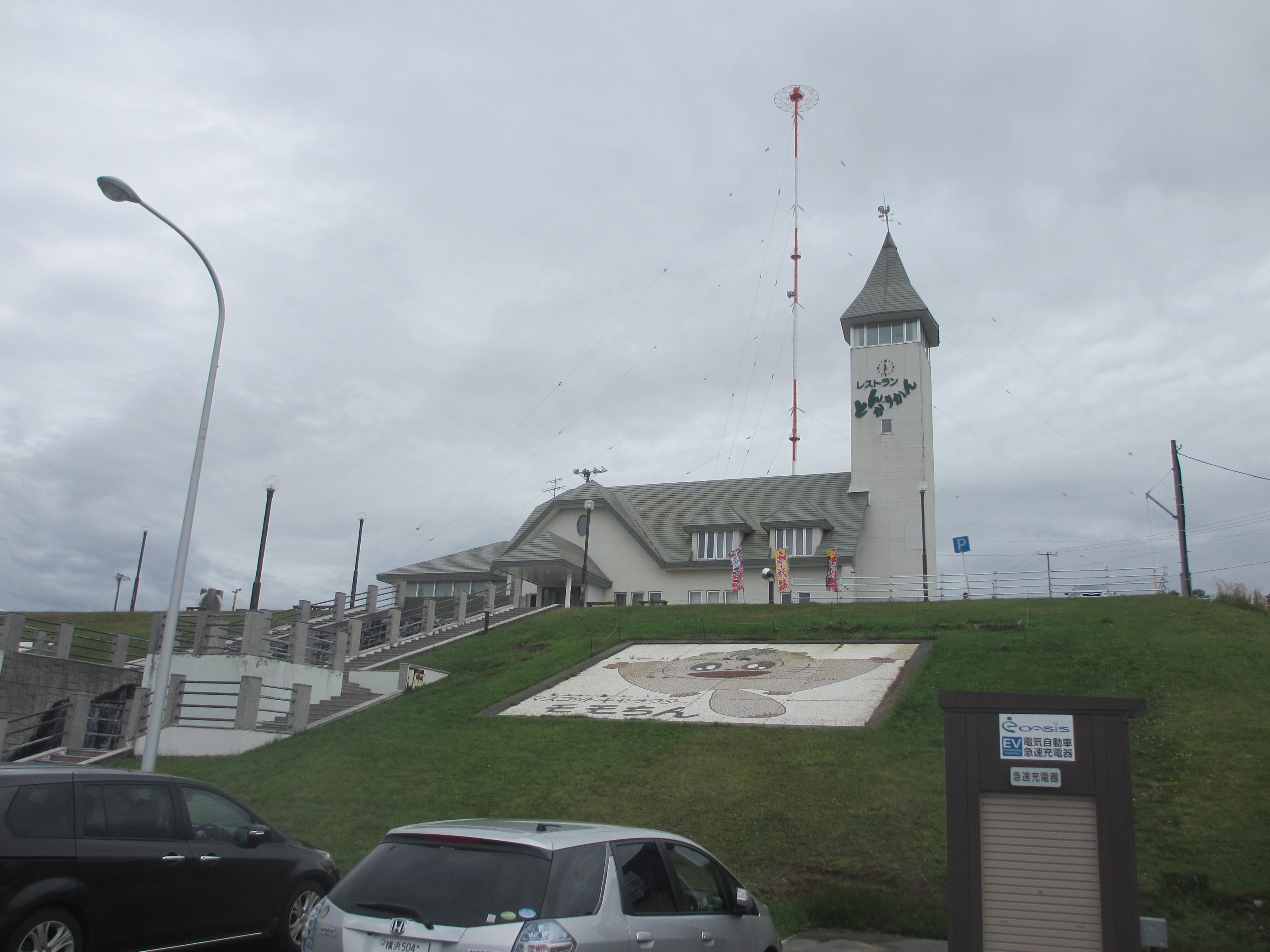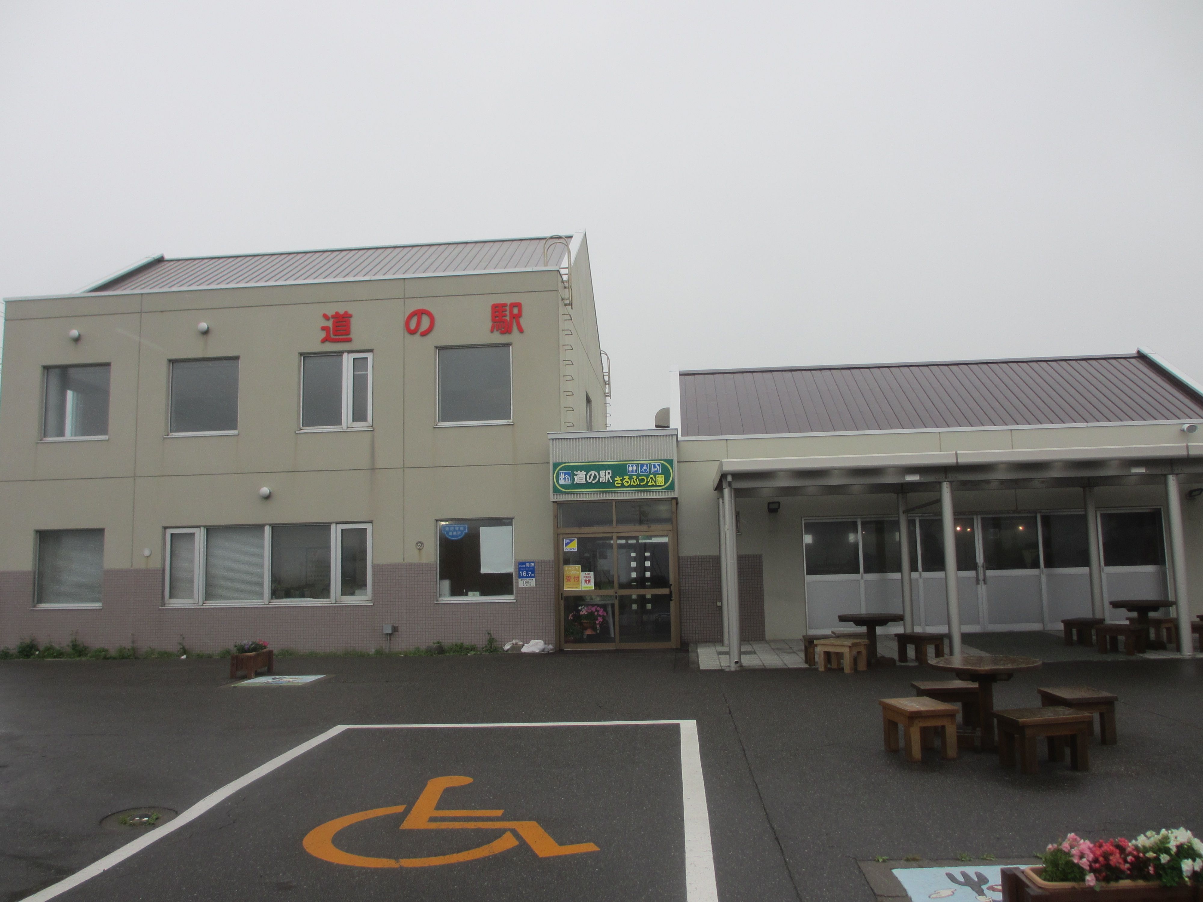 ※2018年8月14日撮影基本情報は、こちらっ!!R232沿い、苫前町にある道の駅。登録番号は94。風力発電が盛んな苫前町なので、風+W(ワット=電力の単位)で、「ふわっと」と読ませる道の駅。温泉+レストラン+ホテル+温水プール+特産品販売所=道の駅という、盛りだくさんな施設。裏には、日本海と天売・焼尻島が見渡せる足湯があるんだけど…、ご覧のように、この日は雨が降りしきっていたので、レジャーシートをお尻に敷き、傘を差しながら、親子で並んで足湯につかりました(笑)カントリーサインは、かわいいクマさんですが、凄惨な三毛別ヒグマ事件が起きたのが、この苫前町です…こうして増やせ!自然(ソフト)エネルギー 苫前、キリバスの挑戦風力発電が、ウリの町です(笑)