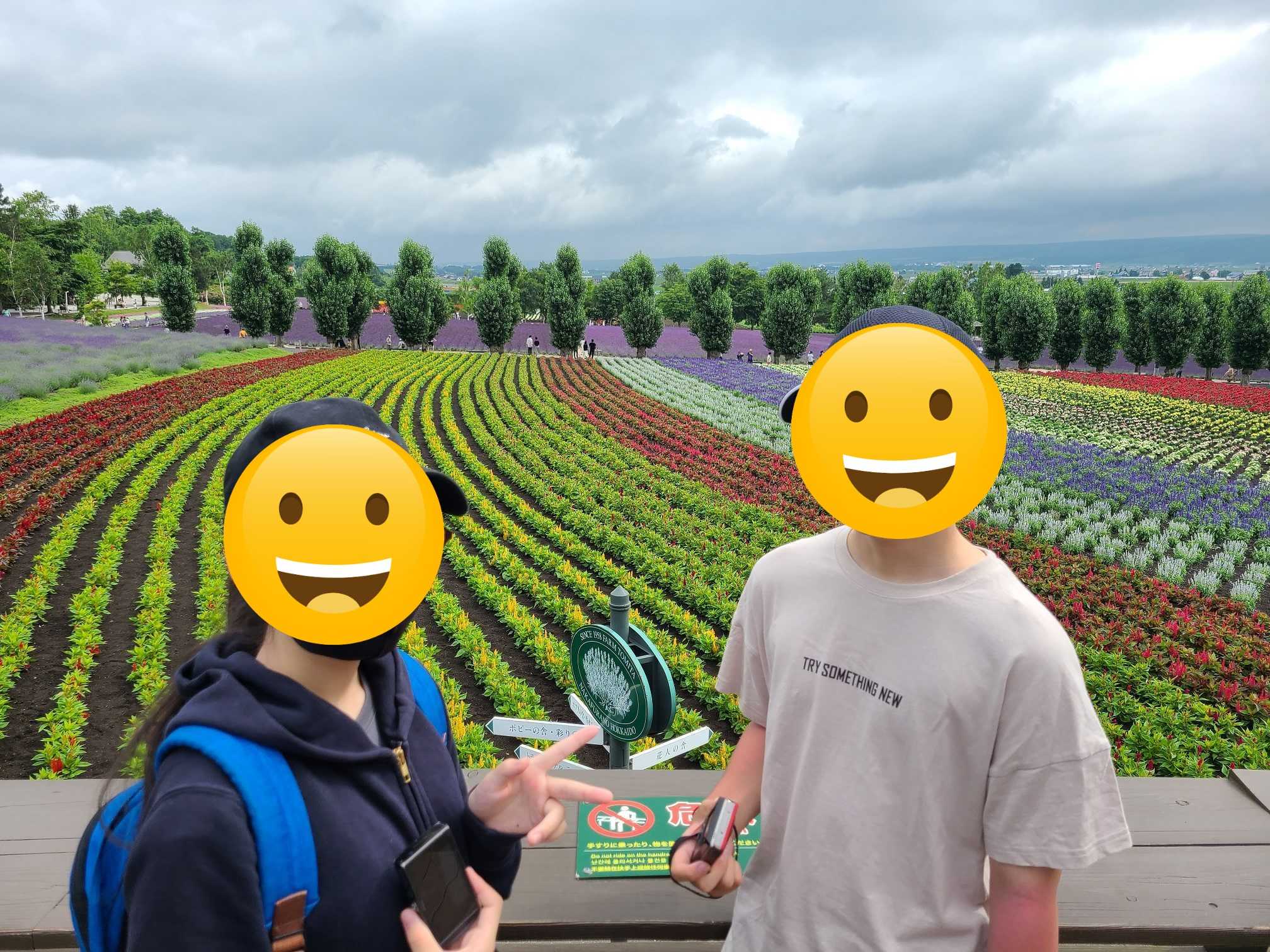 まずは「秋の彩りの畑」ですが、このように看板を入れて斜めから撮るのが虹感が出ておススメ