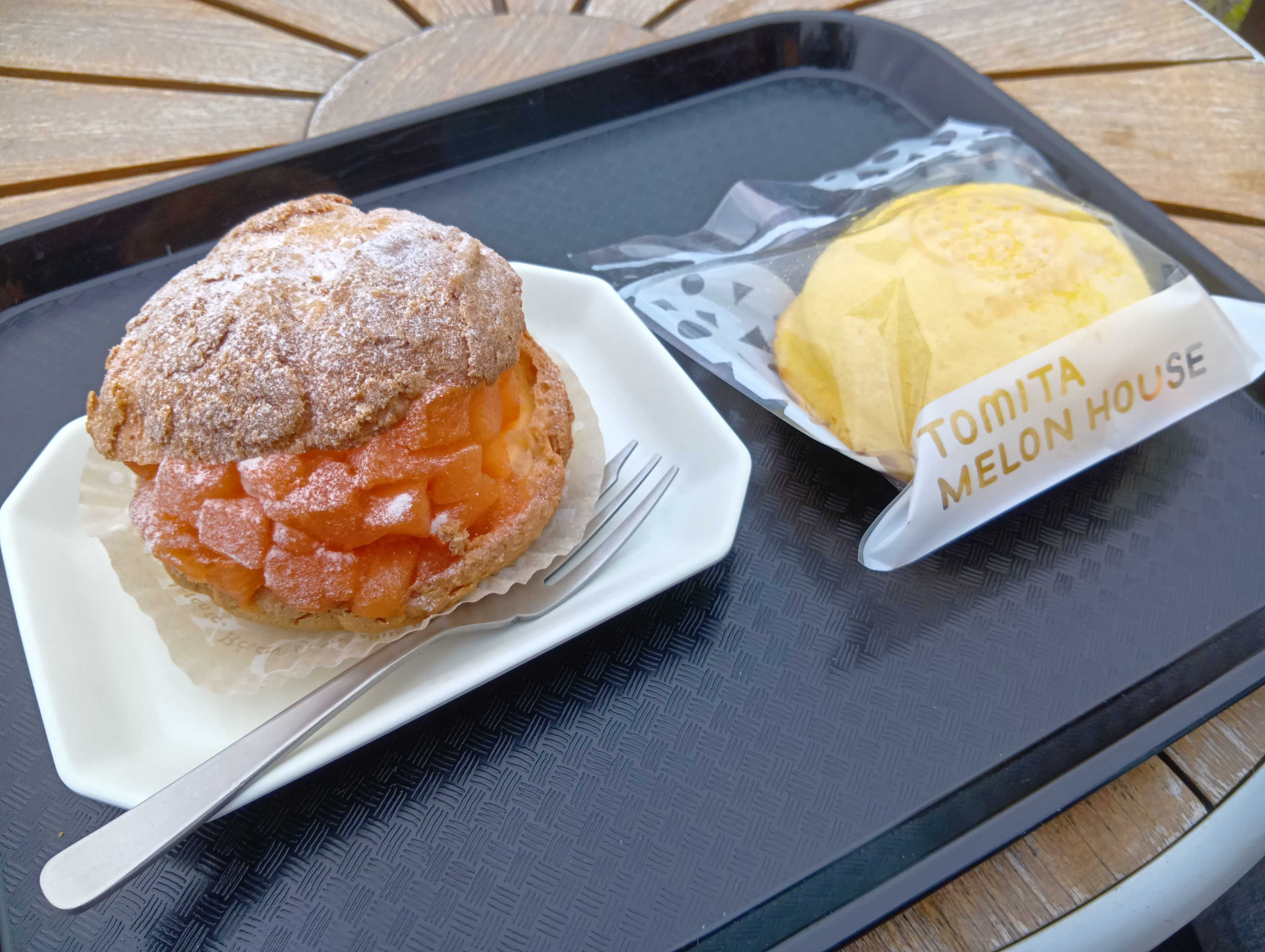 続いて、メロンスイーツです! 自分はメロンシュークリーム、妻はメロンスフレをチョイス♪