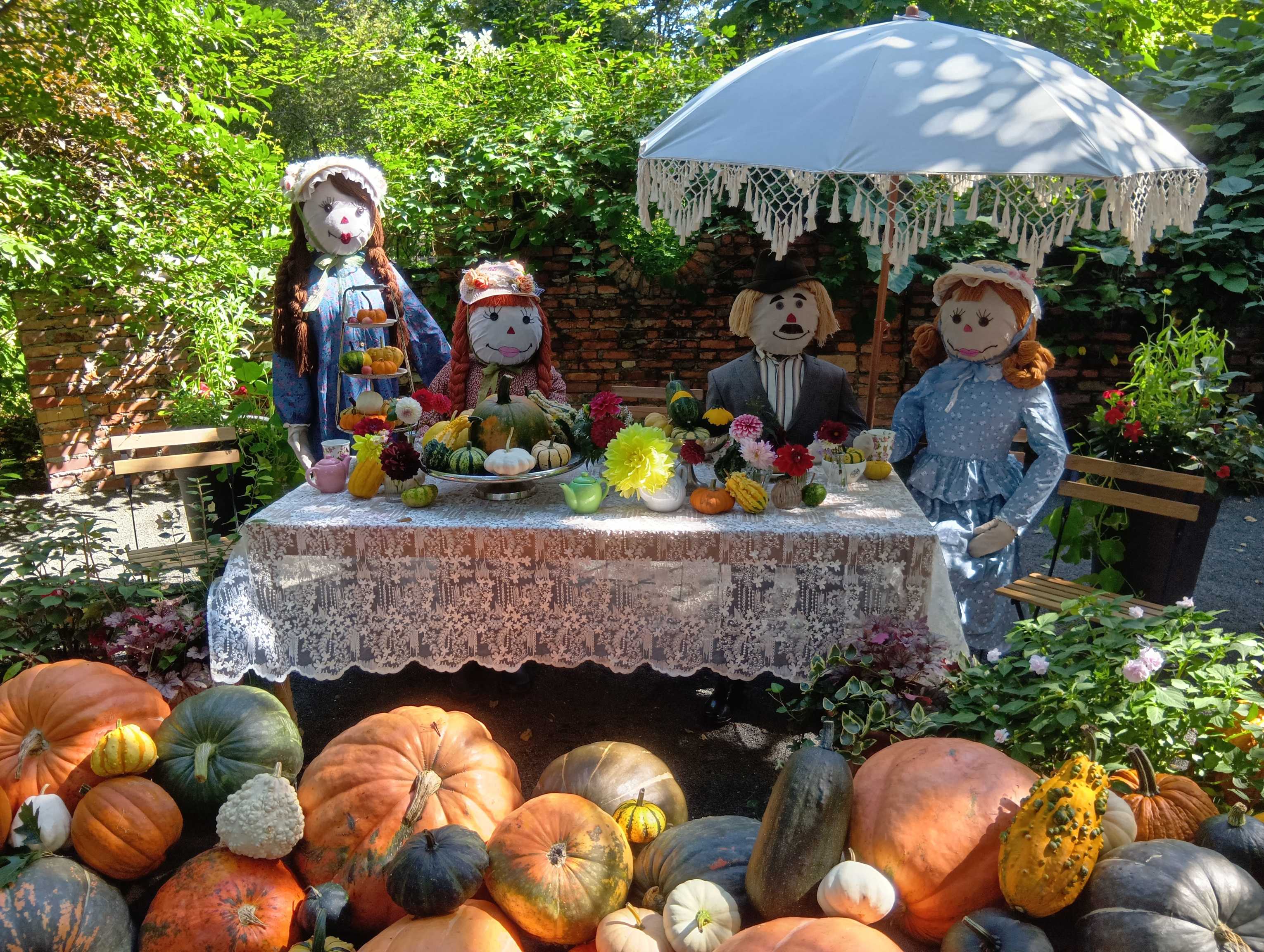 園内はカボチャだらけ(笑) これ、片付けるの大変そう… 天気に恵まれ、木漏れ日がいい感じ