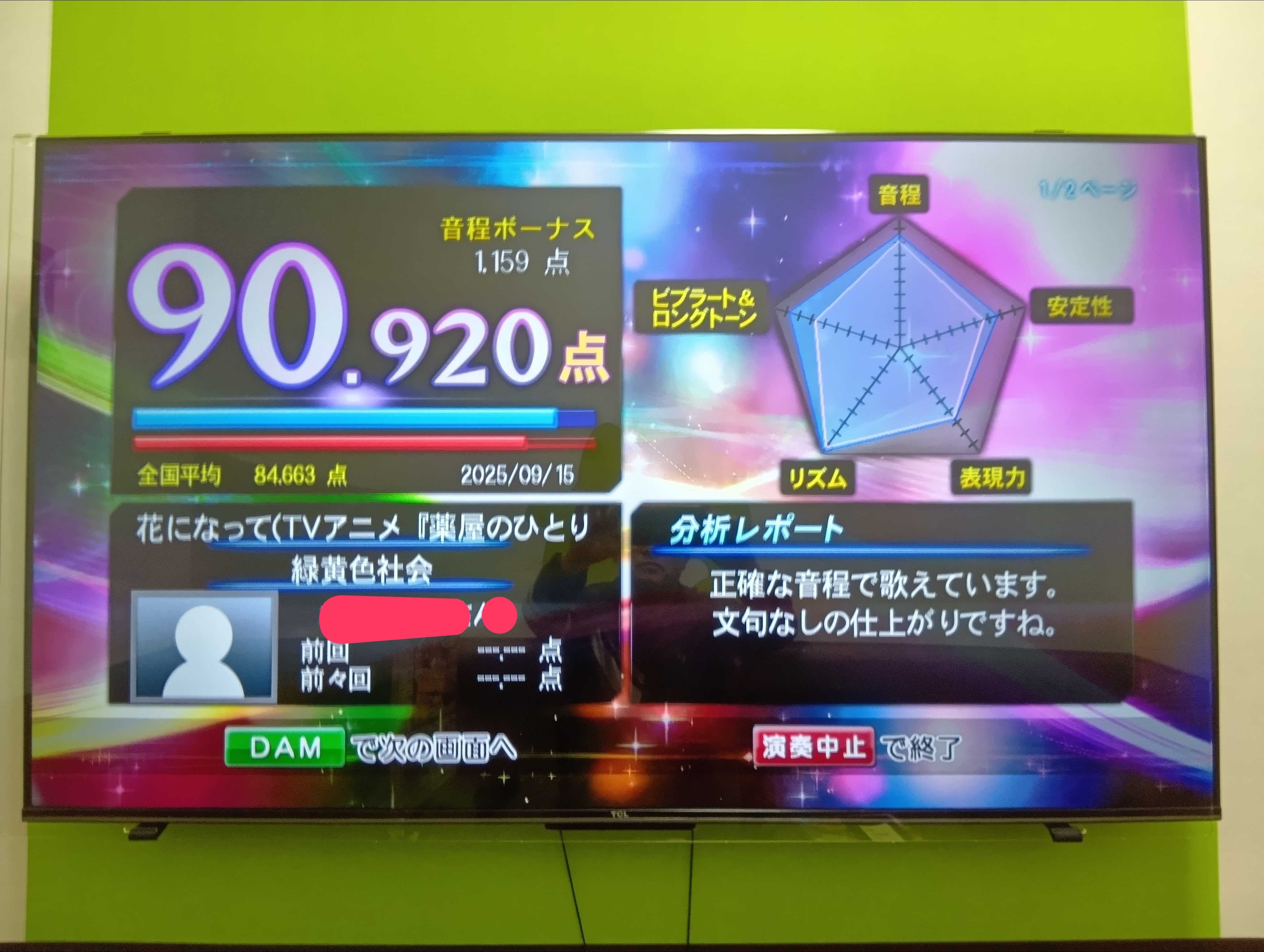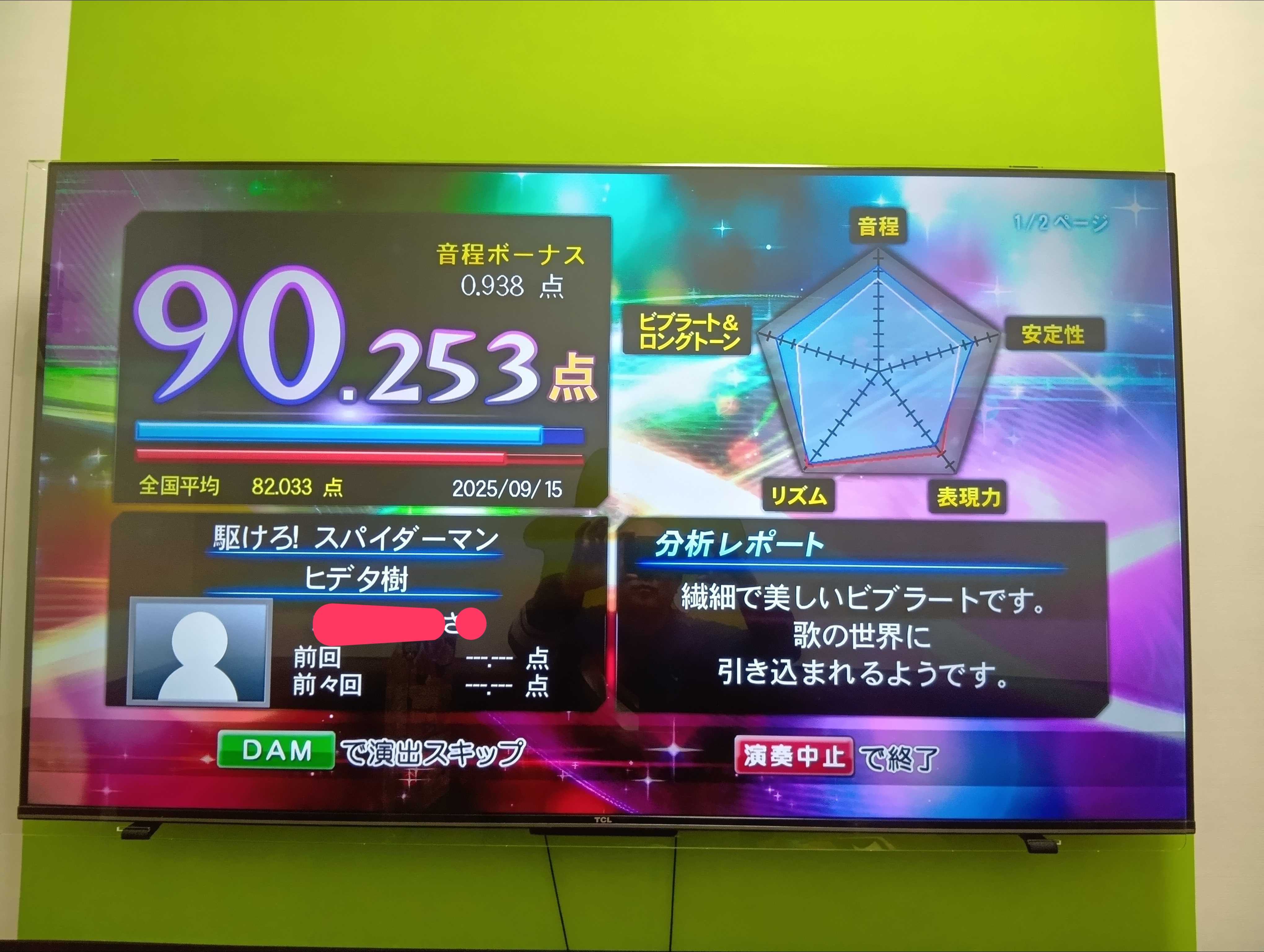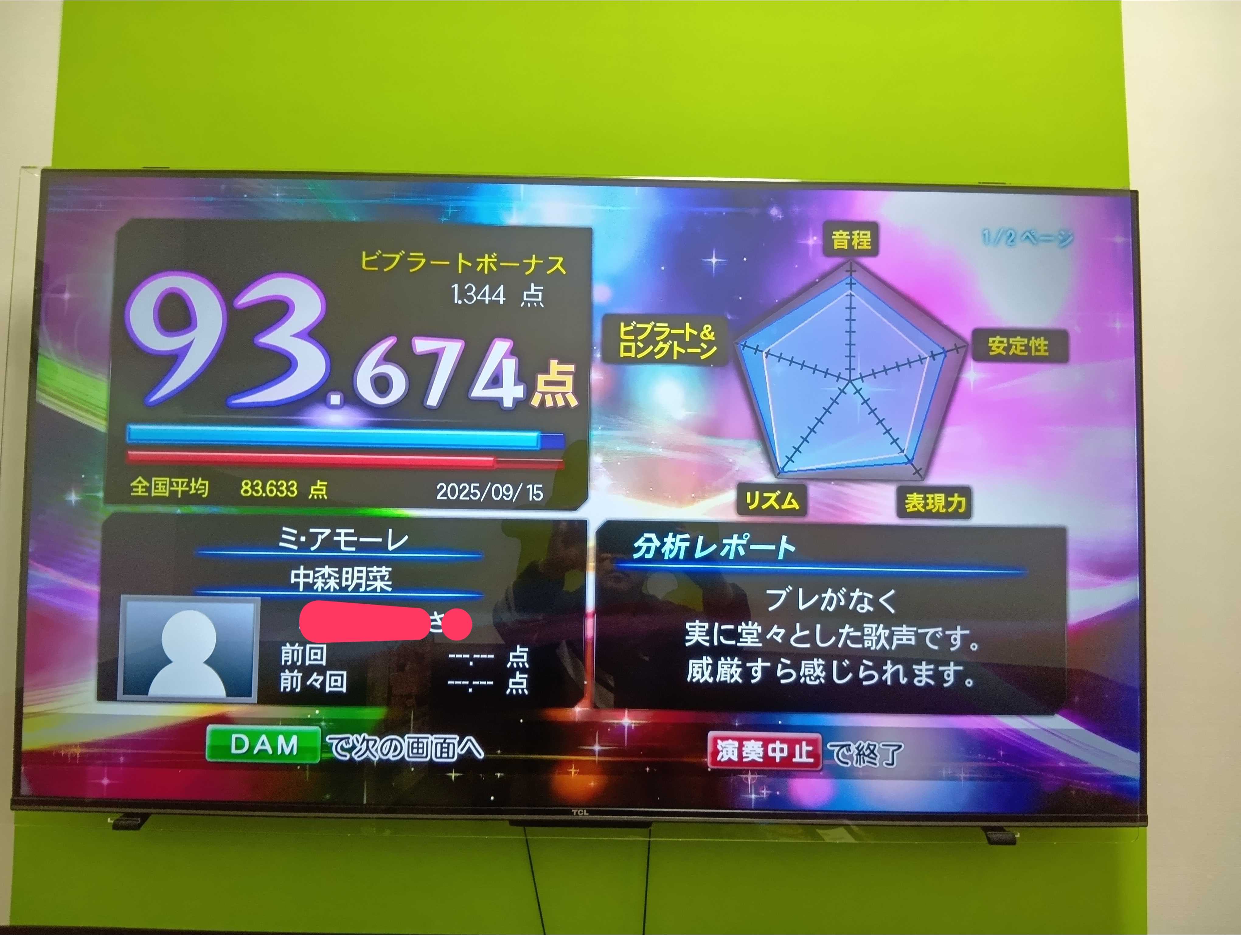…はい、12曲中、8曲で90点以上をとることができましたぁ♪