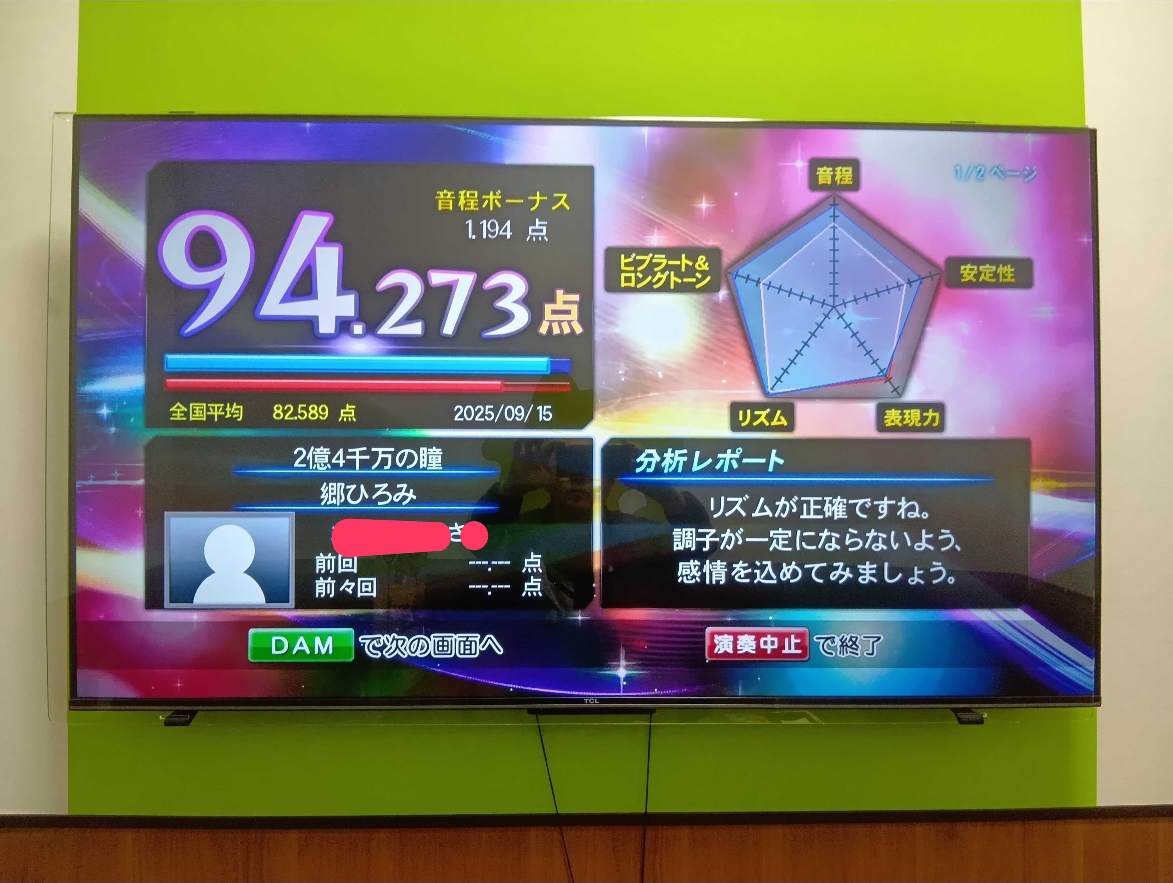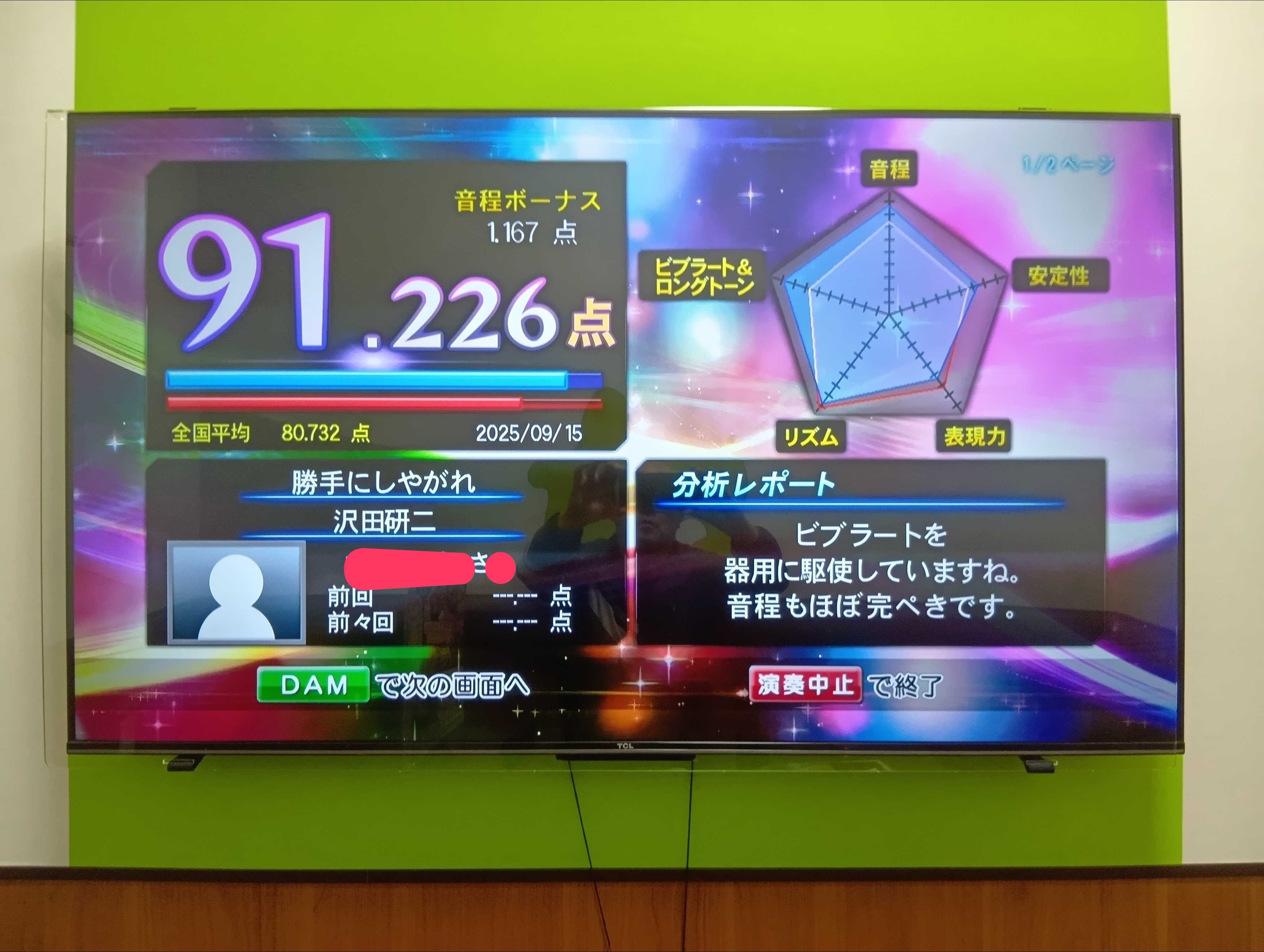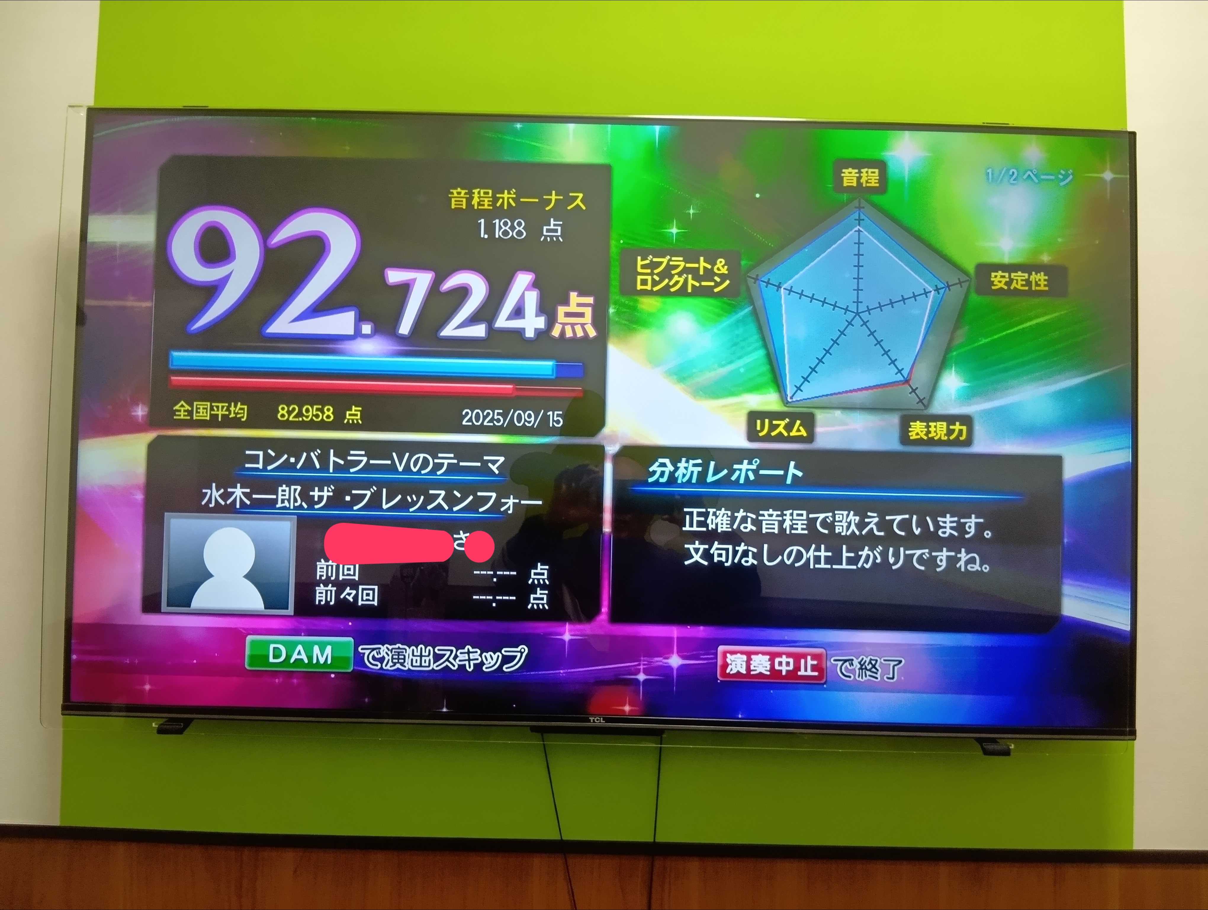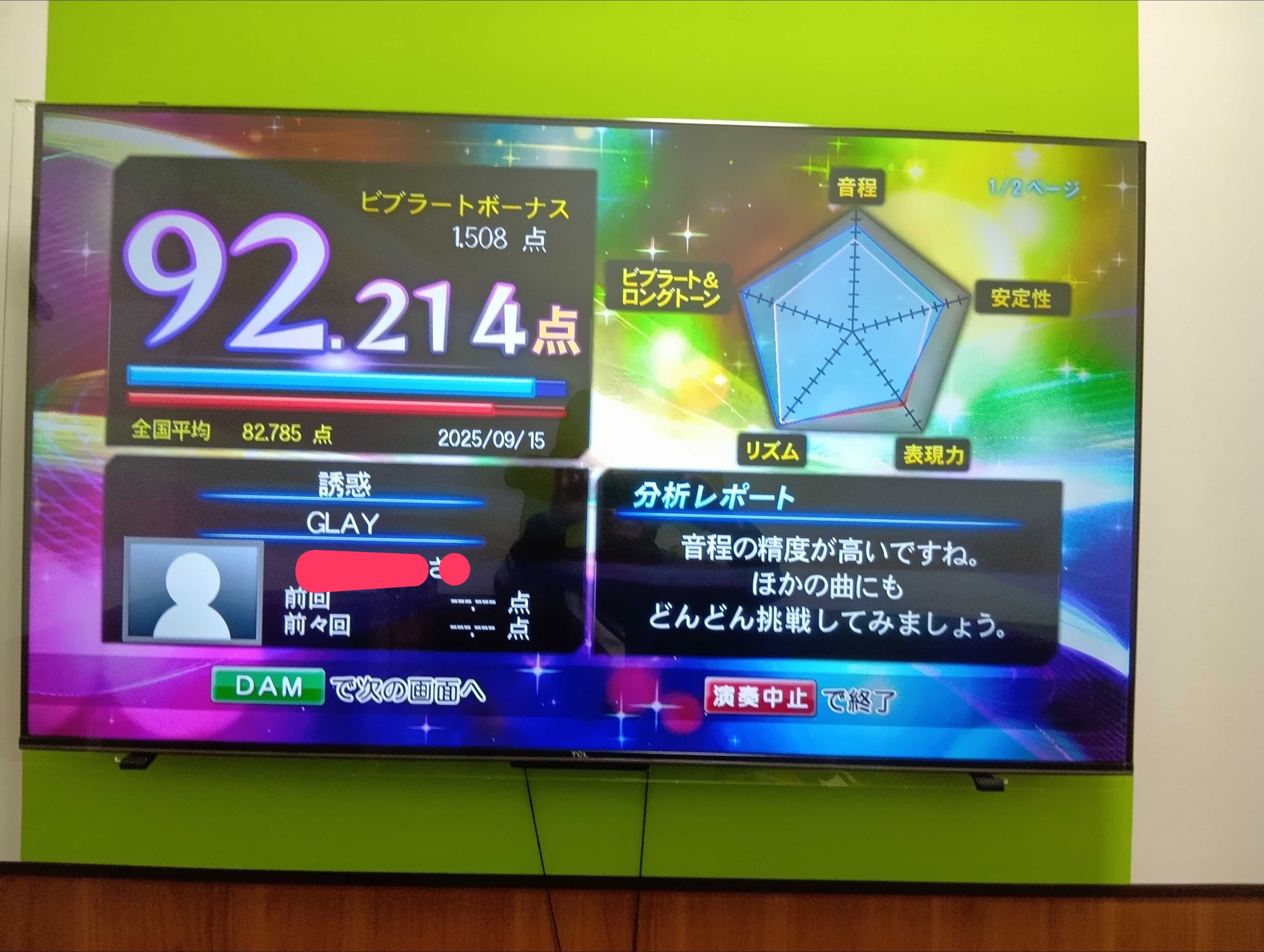 …はい、12曲中、8曲で90点以上をとることができましたぁ♪