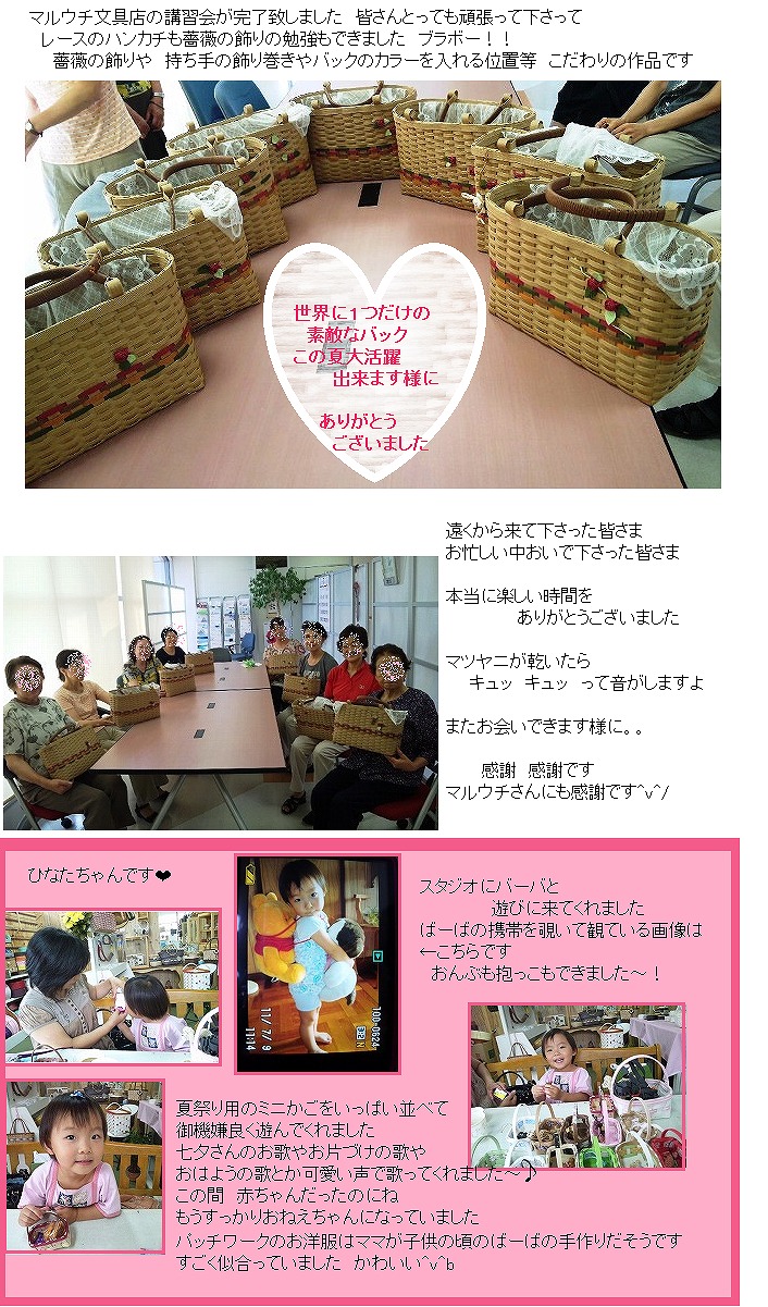 お詫び皆さまのお力をお借りしながら続けて参りました”富士川楽座紙バンド手芸展示会”ですがこの度の東北地方太平洋沖地震の影響もあり会社の都合により開催を見合わせる事になりましたすでに準備に取り掛からせて頂いており 御協力をお願いしていた皆様には大変なご迷惑をおかけいたしまして心よりお詫び申し上げますでも何時か必ず復活して皆さんと御一緒に楽しめる展示会を開催したいと思っております どうぞその時には皆様のお力をお借りしたいと願っております本当に勘弁してくださいね ごめんなさい楽座でのチャリティー募金にしようとも考えましたが楽座の使用料など考えると問題もあり違う形での寄付を考える事にしましたどうぞご了承ください本当にご迷惑をおかけして申し訳ありません ごめんなさい スタジオLAZO 代表 望月 久美子