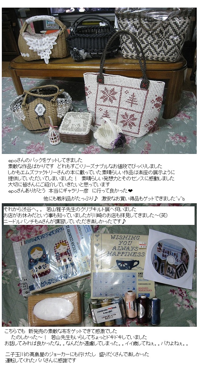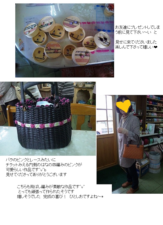 ”第9回紙バンド手芸展示会”場所:富士川楽座2階 フリースペース日時;2011年12月 10(土)&11(日) 両日とも9:30~16:00まで今回は展示即売とミニ講習会を充実させておりますお楽しみにお出かけ下さいね売りあげの1割は 南相馬市の中学校に寄付させていただきますどうぞご協力をお願い致します