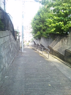 この階段坂の上から江戸時代、江戸前(東京湾)が見る事ができたので汐見坂(潮見坂ではありません)と呼ばれているのですが画像の右側に病院の解剖棟(室)があるのと20年近く前に心霊スポットの1つとしてTVで取り上げられて(番組では病院との話し合いでか解剖棟どころか病院の存在自体伏せられていました)からは解剖坂と呼ばれるようになりました。