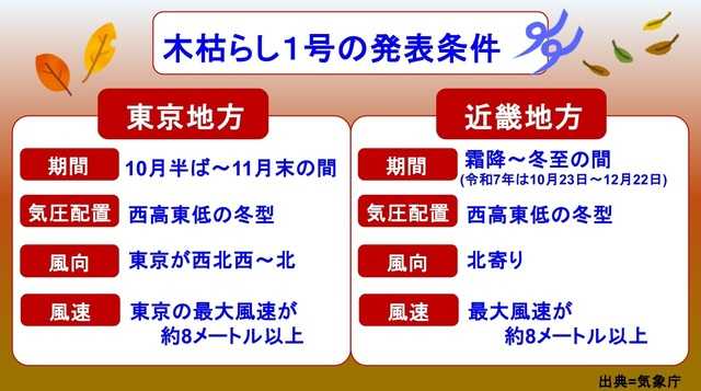 三連休最終日の昨日気象庁は東京地方と近畿地方に木枯らし1号が吹いたと発表を。東京地方・近畿地方共に昨年より4日早く、西高東低の冬型気圧配置となり北寄りの風が強まりました。午後3時までに東京都心部の千代田区では最大瞬間風速17.7メートル京都府京都市と大阪府大阪市では11.5メートル・兵庫県神戸市では13.3メートルを観測しました。気象庁による木枯らし1号の定義です。東京ではこの影響により渋谷区代官山(だいかんやま)近くの旧山手通りでは倒木があり路上駐車していた車に直撃しましたが車には人は乗っていませんでした。*代官山と言っても都内に山があるのではなく江戸時代、代官屋敷があった・代官が山(現代に置き換えると小高い丘)を所有していたなど諸説があるようです*画像はネット借用とテレビのニュース映像を撮りました。