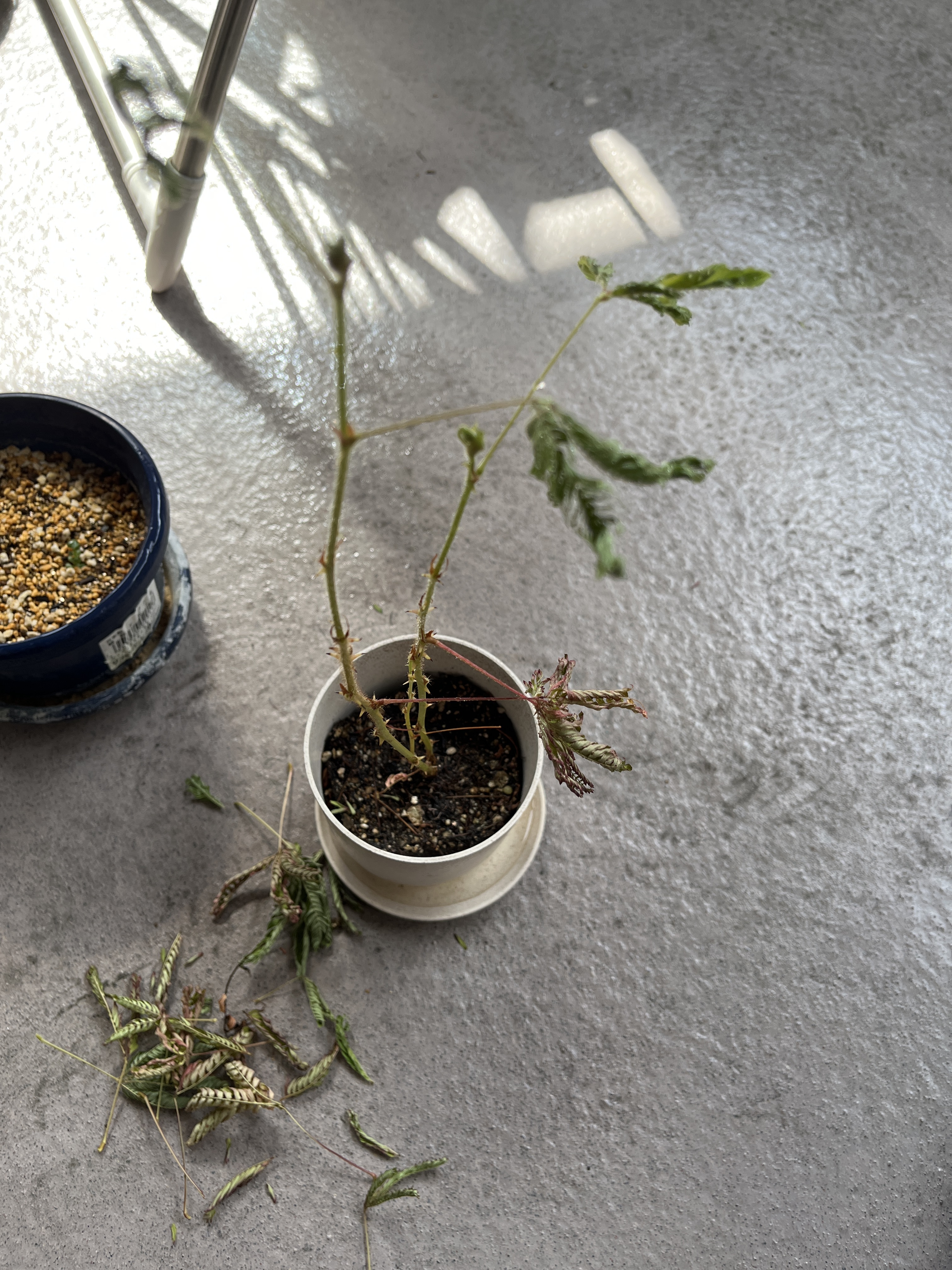 オジギソウちゃん。すまない。一日だけ水やりできなかったらこんな姿に😭