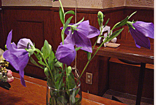 こんにちは猛暑__昨日のNHKの思い出のメロディーご覧になりましたか?近頃、音楽番組ほとんど見ないですがお客様からお勧めで久しぶりに見ました。3日ほど前、浦上天主堂で秋川雅史さんのコンサートに行かれた時思い出のメロディーでトリで<長崎の鐘>を歌うと予告されたそうでじゃ、見てみようかなという気になりました。ちなみに秋川さんに<長崎の鐘>を教えたのは僕だ!!!と店のお客様はおっしゃっておられました。こんなにブレイクするずっと前からお知り合いで一緒にカラオケに行ったそうです。思い出のメロディーでの秋川さんももちろんよかったですが森田健作さんの、<おれは男だ>の主題歌でしたか?「さらば涙と言おう」が懐かしくて不覚にも泪してしまいました~^^千葉弘子さんの<折り鶴>もよかったですねこんなにイイ歌だったんだと改めて感激!たまには歌番もいいですね!先日頂いた桔梗綺麗なので写真を撮っていたらちょうどのタイミングで仲良しのお客様、 ご来店ではまた