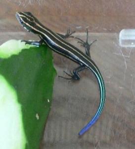 キラキラ光るトカゲを見つけました。しばらく御滞在頂いてこどもの帰宅を持ってもらいました。 ニホントカゲの幼体です。 捕まえた時にしっぽの先を切っちゃいましたが、何とも美し こども、大喜びの後餌の虫を捕まえるのは無理と判断。無事、庭へ返されました。 P.S.捕獲担当は母です。私にゃ無理!私が大丈夫なトカゲは・・タカラトミー モンスターコレクションAG #004 ヒトカゲ