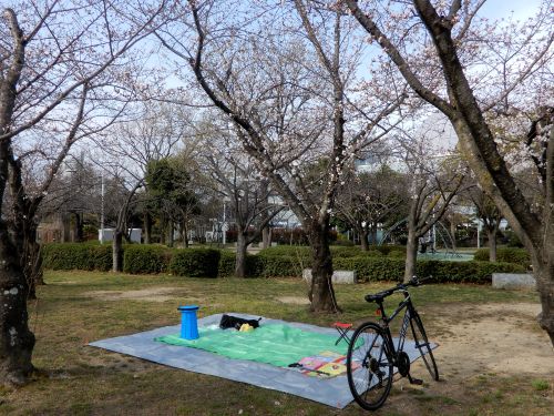 今日は囲碁例会の日。 前回の例会、2月12日は、独り暮らしの叔母の通院介助のため欠席したので、前々回2月5日以来となる、一ヶ月ぶりの囲碁でありました。 お天気は小雨。雨具を着用してCB(クロスバイク)で、会場の梅田スカイビルへと向かう。雨の日は迷うことなく電車を利用して会場へと行くのが通例であったが、このところ腰痛が酷くなり、自宅から最寄り駅までの歩行、大阪駅から梅田スカイビルまでの歩行が苦痛を伴い、とても無理な状態なので、自転車で行くこととしました。 中央大通り、大阪城公園、天満橋、滝川公園、国道1号・2号、梅田スカイビルというのが大雑把なコースであるが、自転車は腰への負担が殆ど無いので、片道22km程度、所要時間1時間半程度の走行となるも、歩行の際の苦痛を考えれば、小雨位なら、雨具着用してでも、こちらを迷うことなく選択するというのが、現在のヤカモチであります。(小雨降る大阪城公園・森ノ宮入口から) 自宅を出るのが手間取り、梅田スカイビルには12時50分前後と、いつもよりかなり遅い到着となりました。 駐輪場にマイCBを預け、地下の全席喫煙席というカフェ・ピアッツァ・ポポロ(CAFE PIAZZA POPOLO)で昼食を済ませてから、ガーデン・ファイブ棟5階の部屋へ行くと既に福麻呂氏、平〇氏、村〇氏が来られていて、福麻呂氏と平〇氏が対局、村〇氏がそれを観戦という状況でした。 ということで、ヤカモチの最初の対戦相手は村〇氏ということになりました。これは3目半の差でヤカモチの負け。 続くお相手は平〇氏、これもヤカモチの中押し負け。 遅れて青◎氏が来場されたので、3戦目は青◎氏と対戦。これは、ヤカモチの中押し勝ち。最後に福麻呂氏と打ち、これもヤカモチの勝ちとなって、今日は2勝2敗という成績でした。 帰途は雨も上がり、曇り空。 大阪城公園まで帰って来て目にとまったのがこの梅の木。(天王寺商業高校同窓会の梅の木) 枝垂れ梅が満開。 往路ではこの梅の木の周囲に10名ほどの外国人観光客とおぼしき人々が集まってこの木を撮影していましたが、復路では、この木をバックに若いカップルが写真を撮って貰っているようです。 この梅の木は昨年の2月7日の記事にも写真を掲載していますが、人気の木のようです。<参考>囲碁例会・全席喫煙です 2024.2.7. 梅田スカイビルを出てからほぼ休みなく走ったので、流石に少し疲れたのと、水分補給と煙分補給のための休憩ということで、横枕南公園の藤棚の下で小休止。(横枕南公園のマイCB) はい、これが今日の相棒です。 更に走って、花園中央公園のあずま屋でもう一度休憩。(花園中央公園の猫) この猫は、多分ネコロンだと思う。同じキジトラ猫でオスの清兵衛というのがいるのだが、オスは右耳が桜の花びら状にカットされているのに対して、メスは左耳がカットされることになっているところ、この猫は左耳がカットされているように見えるから、メスである。 花園中央公園のメスのキジトラ猫でヤカモチが知っているのはネコロンであるから、ネコロンということにして置きます。 まあ、ネコロンも清兵衛もヤカモチが勝手にそう呼んでいるだけで、本当の名が別にあるのか、名無しなのかは知るところではない。 以上、囲碁にかこつけての銀輪散歩記事でありました。<参考>囲碁関連の過去記事は下記参照。 囲碁関係(その1) 2008年~2019年6月 囲碁関係(その2) 2019年7月~ 犬、猫などの記事はコチラ。