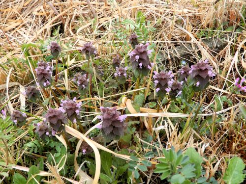 本日(3/27)は、平城宮趾公園や佐保川畔を銀輪花散歩してまいりました。 先ずは、ヒメオドリコソウとホトケノザ。(ヒメオドリコソウとホトケノザ) 上の写真はヒメオドリコソウですが、右端に1本ホトケノザが写っています。両者をかつてはヤカモチも混同したりすることがありましたが、最近は流石にそういう間違いはしなくなりました。 これは、平城宮趾の東院庭園の東裏手の畦に咲いていたもので、両者が並んで咲いていることから、両者を比較してその違いを明確にするには丁度よいショットかと、カメラを向けた次第。(同上) こちらは、正面手前中央にホトケノザが咲き、背後は全てヒメオドリコソウということで、両者比較の写真としては、この方が優れたショットかもしれません。 ツーショットとなるアングルはないかと探すと、ありました。(同上) 左側がホトケノザ、右側がヒメオドリコソウ。 ただ、手前のカラスノエンドウが邪魔をして、ヒメオドリコソウを見えづらくしているという難点ありではあります。 近くには、ツクシも沢山顔を出していました。(ツクシ<土筆>) こんなに群生していては面白味に欠ける。 これも、ツーショットとなるようなアングルはと、探してみました。(同上) はい、探せばあるものです(笑)。 そして、レンギョウも今を盛りと咲き匂っています。(レンギョウ)(コブシ) コブシが咲いていたのは、酒造司の井戸の遺跡の脇。(酒造司の井戸の遺跡)(同上説明碑) 「平城宮にはここで使う酒や酢を製造した、酒造司という役所があった。ここからは、醸造用の水を汲んだ井戸がいくつか見つかっている。この井戸はそのうちの一つで、杉の大木をくり抜いた直径140cmの井筒を中心として、円形に川原石を敷き、周囲に石を組んだ溝をめぐらせ、六角形の屋根をかけていた。このような立派な構造をもつことから、儀式用の酒の醸造に用いた特殊な井戸と考えられる。 遺構は盛土をして保護し、その上に型取りした遺構模型を展示している。」 朱雀門脇から平城宮趾公園を後にし、大宮通りに出てこれを東に向かう。 奈良市役所の前で信号待ちとなったので、大宮通から県コンベンションセンターの前の道を通り抜けて三条通りに移る。これを東へ、すぐに佐保川畔に出る。 佐保川というと桜並木である。 佐保川の桜や如何にと、川畔の道を下流に向かって走る。(佐保川の桜)(同上) そこそこに咲いていて、間もなく見頃を迎える感じです。(同上)(同上) この木が一番満開に近い。 川原に石橋があり、並木の間隔がここでは広くなり、南側が開けた立地になっているので、他の木よりも日当たりがいいのだろう。 しかし、この日は時々雨がパラつくというイマイチのお天気。 一応、雨具は用意して来たが、降られてまでは走りたくない心境。 ここで、またパラパラと来たので、対岸に渡って奈良駅へと向かうべしで、下流へとさらに進むと、大安寺西中学校の近くで対岸へと渡る橋があった。 そこは、どうやら名前は何とも存じ上げないが、佐保川の支流となる川との合流点になっているよう。 で、その支流の川沿いに東へと進むと。 早咲きの河津桜と出くわしました。(佐保川支流の河畔の河津桜) 既にして、盛んに散っていますが、ソメイヨシノとはまた違った雰囲気で、河津桜もなかなかいいものです。(同上) 以上、銀輪花散歩でありました。<参考>花関連の過去記事 花(5)・2022~ 花(4)・2020.4.~2021 花(3)・2017~2020.3. 花(2)・2012~2016 花(1)・2007~2011
