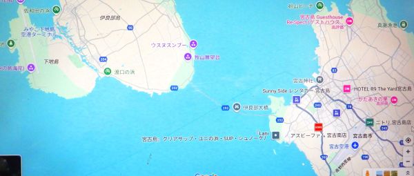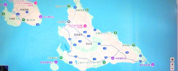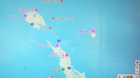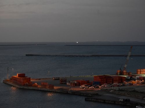 岬麻呂氏のメールによるご説明では、「時間は20:14ですが、灯火が多く画面が明るいです。中央奥の海に船舶の明るい灯が写っている右横の高い位置の灯りは『池間島灯台』です。」とのこと。