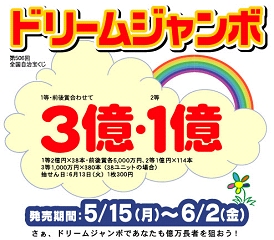 先日、大安吉日!のノボリに誘われて買ってきました。『ドリームジャンボ宝くじ♪』・・・昨年暮れの記事と似てる??高額当選したあかつきには、名古屋移住を実現したいと思います。2週間後には億万長者かぁ~楽しみですね! 一年中ナゴヤドームのシートで応援します!そしたら、今度こそブログタイトルの変更です。 『やっと、私も愛知人』 『名古屋のドラゴンズファン』 『ドラ行きタイムはフリーで通る』…(意味不明?) 以上、すべて(数少ない常連さんのブログタイトルの)パクリでした。 m(__)m 愛知人さん、おれりゅうさん、K11さんすみません!! 億万長者が152人!等 級当せん金額本 数(38ユニットの場合)1等200,000,000円38本1等の前後賞50,000,000円76本1等の組違い賞100,000円3,762本2等100,000,000円114本3等10,000,000円380本4等1,000,000円380本5等10,000円380,000本6等3,000円3,800,000本7等300円38,000,000本 抽せん日 : 平成18年6月13日(火) 支払期間 : 平成18年6月19日(月)~平成19年6月18日(月) 6/19には、ほっほっほっかな・・・(なんつって♪)。