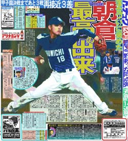【中 日】 ○朝倉(5勝5敗) -高橋聡- 岡本 S岩瀬(34セーブ)