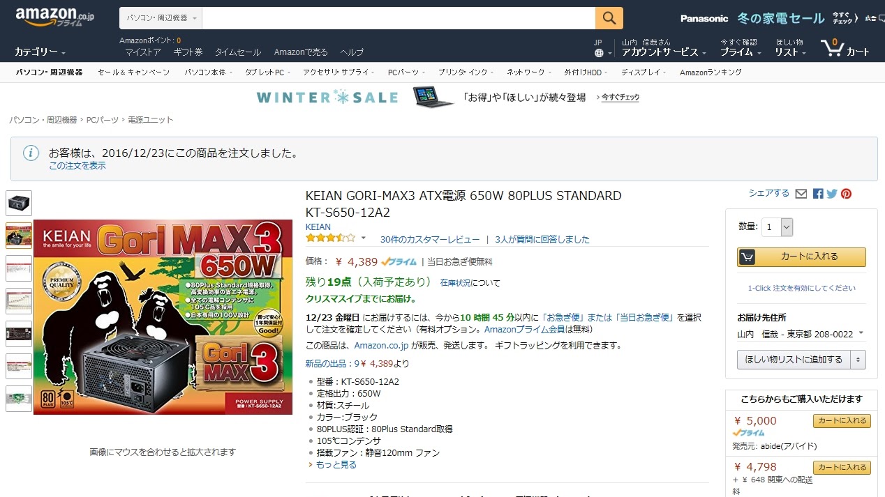 で、メインPCをいじり直すなら…懸念だった電源も…というわけです