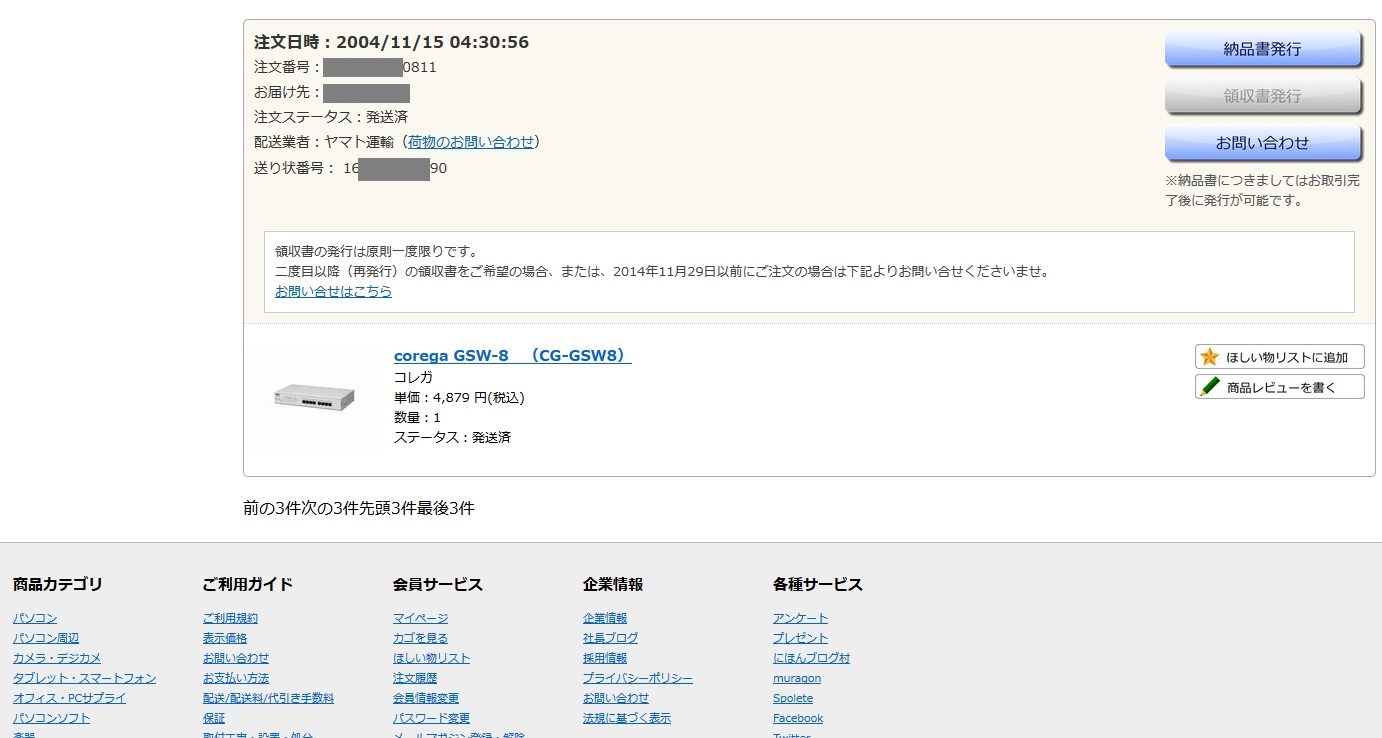 それでもしっかり、購入日の記録は残るので、何かあったら問い合わせるだろうけどね