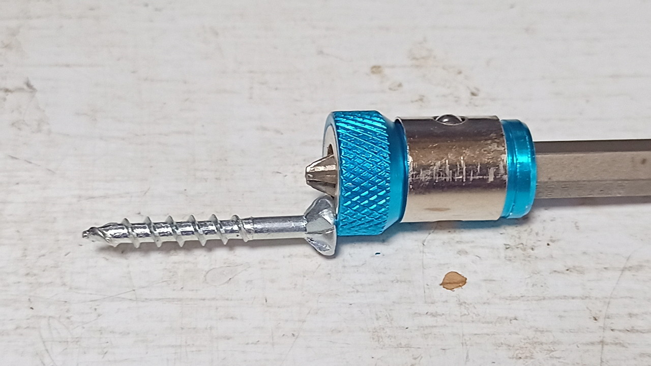 こんな感じで磁石でネジがドライバーの先端に固定されるので打ち込みが楽になります