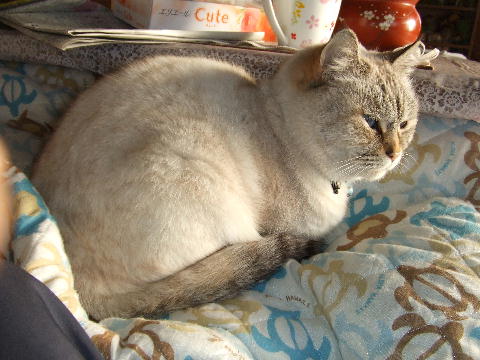 おはようございます曇りの休みの朝です只今1回目の洗濯中、後2回ある、二人だけなのに3日くらい貯めると回数多くなる昨日は晴れて暖かく店の中も暑いくらいでした。宴席で、2部屋使えなく、8席+1(一人用)でランチタイムなんとか回しました。どの宴会も12時前からスタート他のお客様もお昼前から、予約がある時はいつもですYちゃん一人で一般のお客様対応、しおんは宴席対応と別れて仕事、宴席は最初の方だけ少し忙しだけだからそれが落ち着けば後は一般客にまわれるので、でもそのうちにあっという間に満席でもなんとか食べ終わった方の所から相席して貰い、長いするお客様もいなく無事にミスも無く終了 予約のお客様ですが、一つが「俳句会」予約の時に言ってくれれば良かったんですが、句会もする事にしていたようでお料理食べる前にしたかった用なんです、時間が11時~だったので、しおん達は聞いてないので、普通に宴席のセットしてたので、方付けから出ないと、紙広げられないし書けないから先に食べて方付けてからしましようとなりしおん的にはえぇ・・・・方付けランチタイム忙しいのに、方付け忙しい時にきました、とりあえず他のテーブルに全部移動して置いて様子みながら方付けしました。もう一つの方は昼間から日本酒2合16本5人で飲んで声が大きくなりながら楽しんで宴会してましたよ お気に入りの爪とぎベットにもなるよ 本日はお休みですが、何と大工さんがきてます。この大工さんみーこちゃんの飼い主くるみと姉妹家直すのは4月からなんですが、その前に防音工事でエアコン取り合えが2月までに終わらせないといけないので、上の壁紙の張り替えに来てます。震災からもうすぐ2年、この地に残る事にしたので、家の修理、防音工事ができるようになりました。 大工さんきてるけど、今日は寝て曜日ゆっくりします