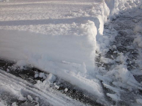 こんばんは風邪引きましたいつもは朝に風邪薬飲んで仕事に行ったんですが、のど痛い、声変、鼻水止まらない引きましたね今朝は朝から家の雪かきしていったんですが、それも悪かったかな明日は50名の法事、朝から店閉めて法事の準備にかかります、休めない今晩で直って欲しい 今朝の雪です分かりますかこれ位夜で積もったんです。サラサラした雪で雪かきやすかったです庭も雪に埋もれてます日中は晴れたので雪かきしたところは溶けて我が家は乾いて無くなりました。そこらじゅうに雪の山が出来ていて、車雪山に当たってます車から前方の道路は除雪されたのか雪がアイスバーン状態になってますこうなると恐いですよこの状態も恐いです雪にタイヤとられますから 昨夜は早い時間帯からアイスバーンになって車渋滞してました。今日は晴れて随分溶けましたが、やはり所どころ滑ります雪は厄介ですね。 明日も仕事です