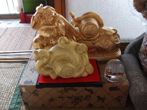おはようございます氷点下の朝です最高も0度だよ・・・・・晴れてるから余計に寒い 昨日店に宮城のブロ友さん一家が訪ねて来てくれました再開はおと年の8月以来1年5か月ぶりですお土産いっぱい持ってきてくれましたよお米10キロ、白菜2個、白石温麺1箱、店にメリーズチョコの詰め合わせありがとうございました<m(__)m>あんどーなっつさん又会いましょうね 店と言うと、今年のお正月は昨年とは違い忙しく売り上げも良く良かったです 今年の干支後ろは毎年購入してるお茶さんの今年の干支置物前は母が購入したお酒か焼酎の干支今年もアマリリスが咲き始めました 今日から母が3泊で湯治に行きます。 仕事です行ってきます