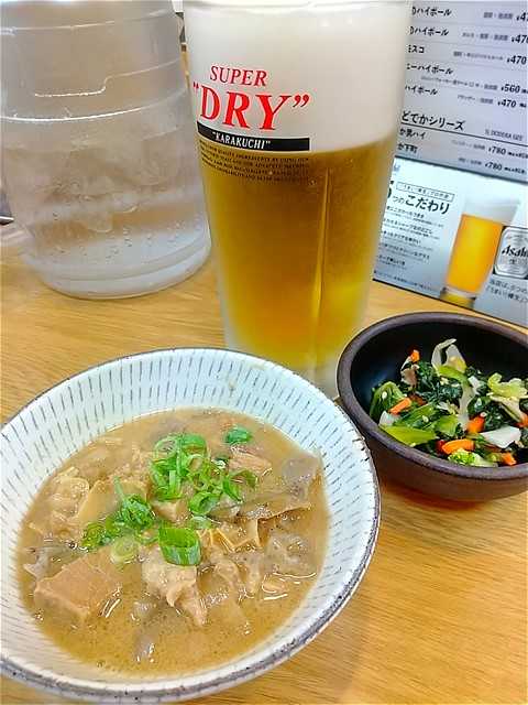 鉄板酒場 鐵一 ヤエチカ店 であります(リンク)。立ち飲み店だが椅子あり。テーブル席とカウンターに分かれる。自分はひとりなのでカウンターに通された。ちょい飲みセットを注文する。牛もつ煮込みはハチノス入り。あと生ビール。お通しは200円だが、質、量に不満はない。鉄板オムかつと、とり串焼きを勢いで追加注文する。とり串は長さがあって、普通の串の二本分はある。オムかつは絶対頼むべし。これはアルコールに合うなあ。こってり味をホッピーで洗い流す。やまやろうは、ホッピーを頼んだ時、中焼酎の量を記録している。店によってバラバラなのだ。これは一杯目の量。少ない。中焼酎を追加。一杯目より多い。だから複数杯を飲むのが当たり前になる。ホルモン串のハツとガツを追加。ニセンペロだあー。厨房一人、接客二人で回しているのって凄いなあ。外国人採用が当たり前ですね。ホッピーひと瓶で、中焼酎を三杯飲むのが、やまやろうの流儀。ホルモン串は安くて美味しいので、個人的にはお勧め。働く人のランチメニューもあるし、昼飲みのメニューもある。普通の労働者と、のん兵衛の観光客の両方を取り込める賢い運営ですな。鉄板酒場 鐵一 ヤエチカ店滞在時間:12:40~14:00支払い金額:忘れた