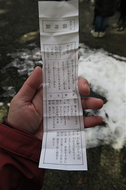 初詣の後は、おみくじだよねー。第48番「末吉」である。 昨年と同じ結果