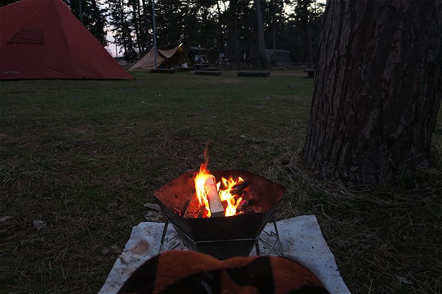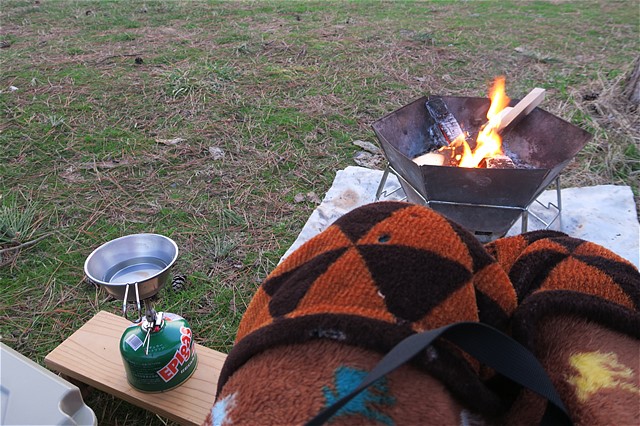 持ち込んだ薪が少ないので、焚火の着火はなるべく遅らせたい。暖かいからそれが可能。