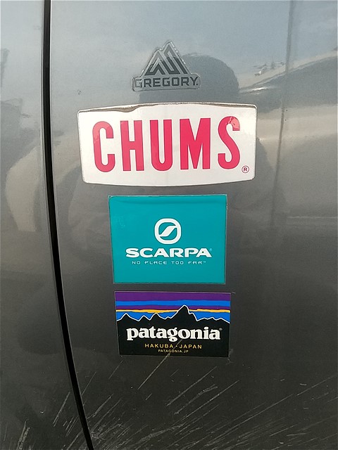 お手軽にできるのは、ステッカーの追加である。背面はパタゴニアの小さいステッカーしかないので、目立たせるならここしかない。